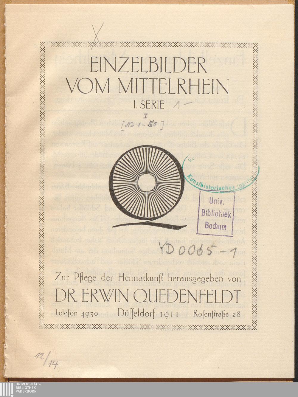 1 (1911) Einzelbilder vom Mittelrhein : zur Pflege der Heimatkunst / hrsg. von Erwin Quedenfeldt