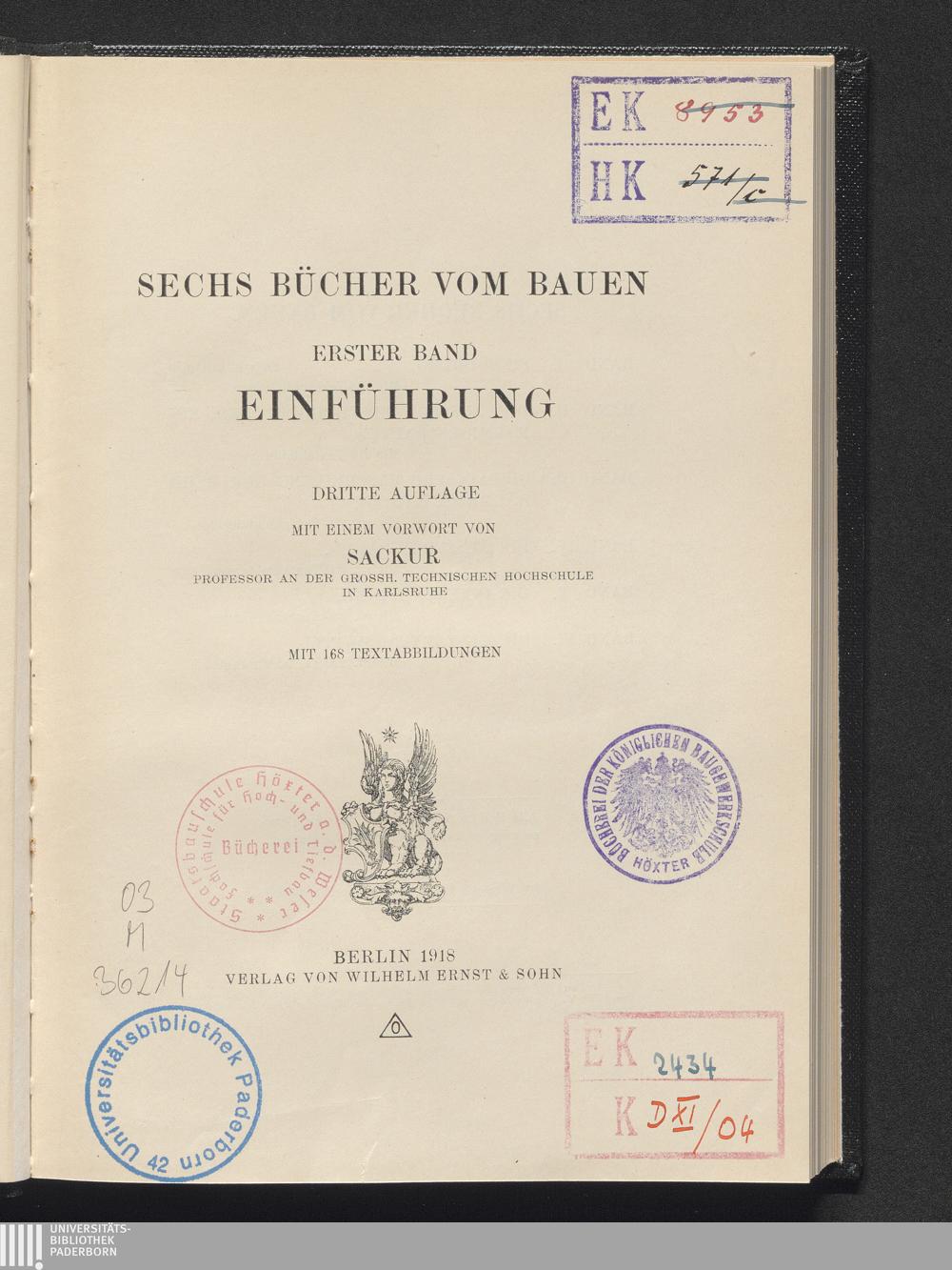 1 (1918) Sechs Bücher vom Bauen : enthaltend eine Theorie des architektonischen Entwerfens / von Friedrich Ostendorf. 1 / Einführung