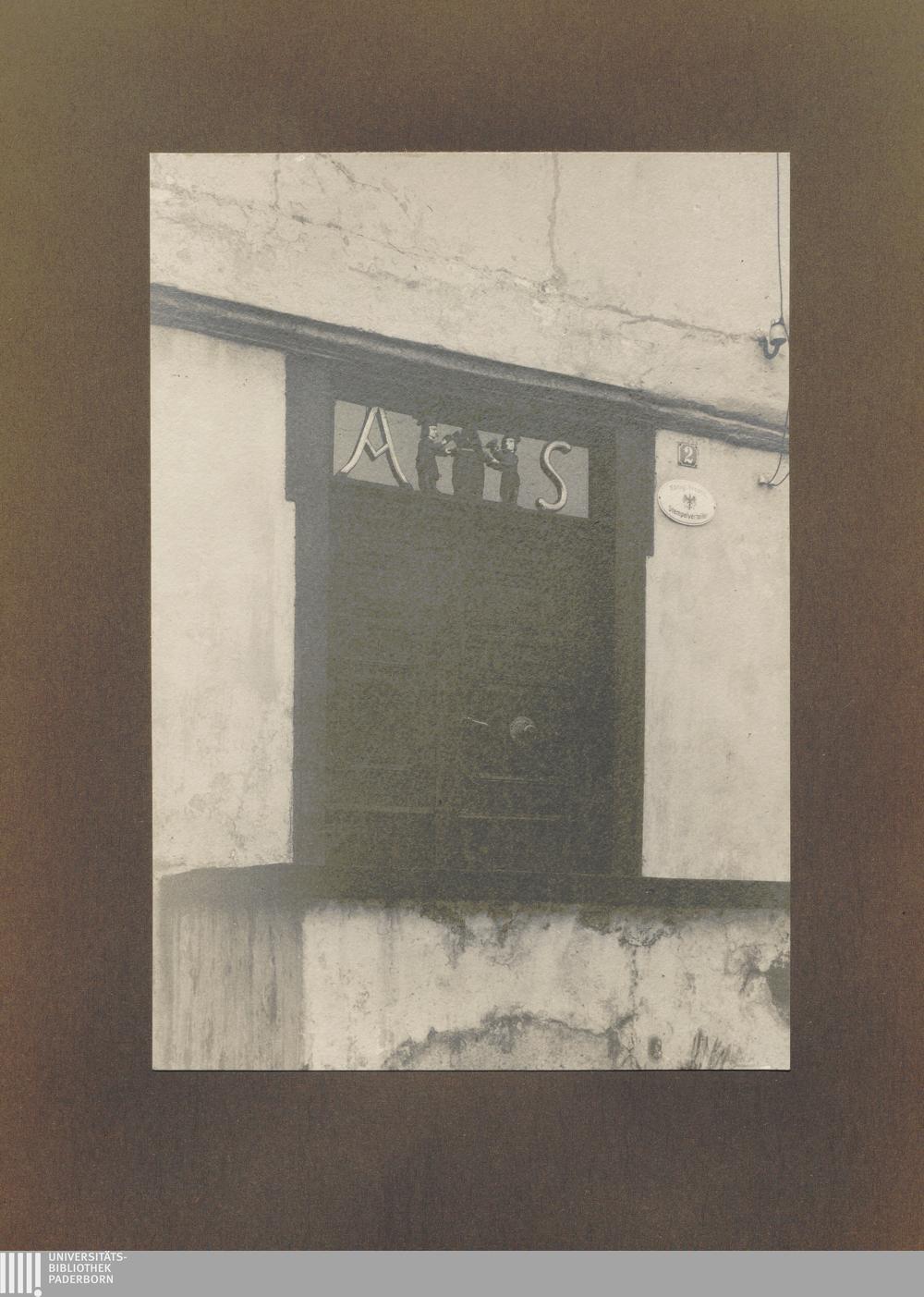 Hönnigen, Giebelhaus Rheinallee 2, Tür mit Böttcherei im Oberlicht / von Erwin Quedenfeldt