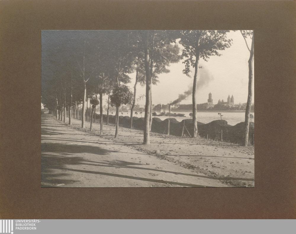 Leutesdorf, Rheinallee mit Weißdornhecke, Blick über den Rhein auf Andernach / von Erwin Quedenfeldt