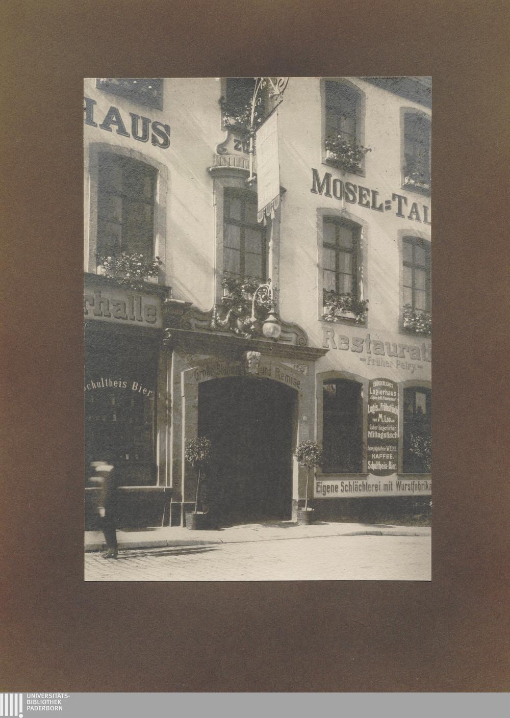 Coblenz, Tür des Gasthauses zum Moseltal an der Moselbrücke 6 / von Erwin Quedenfeldt