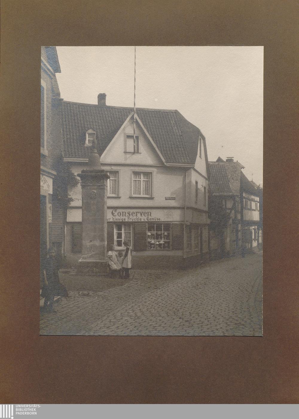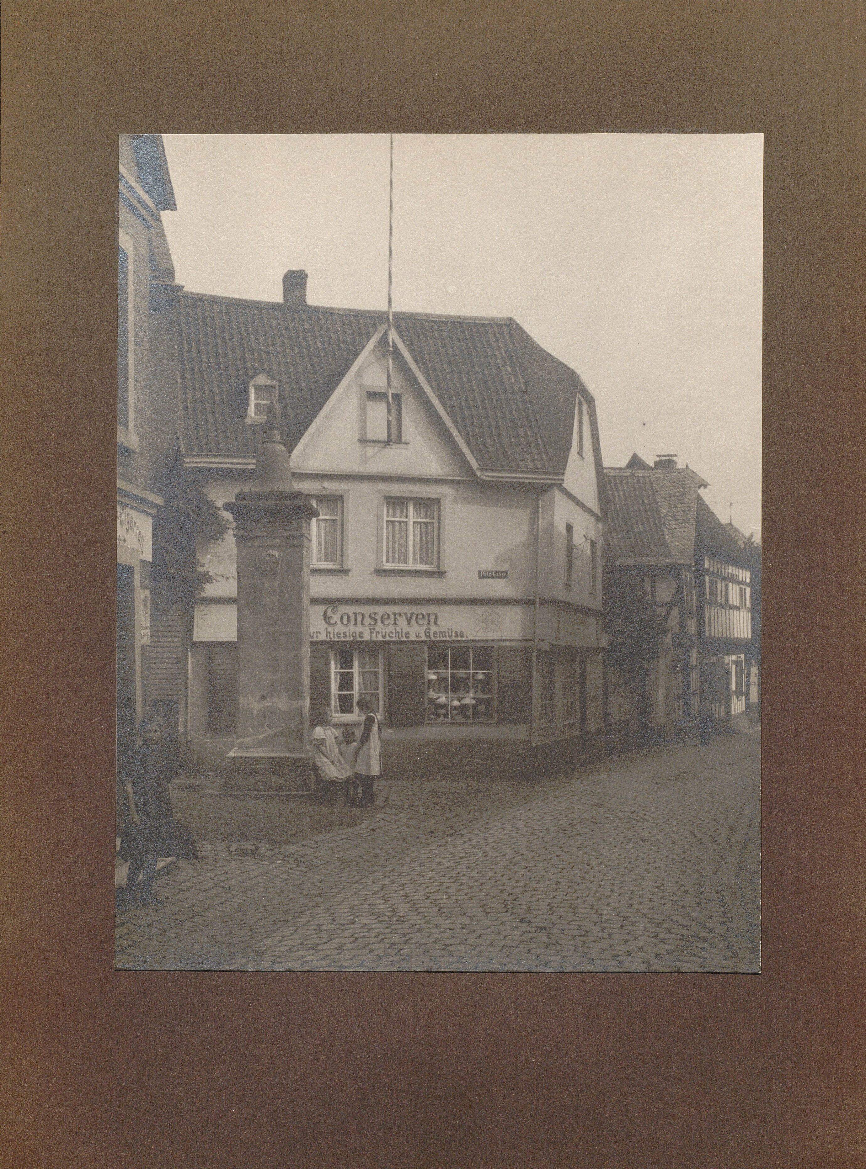 Unkel, Giebelhaus Ecke Pützgasse mit Brunnen / von Erwin Quedenfeldt