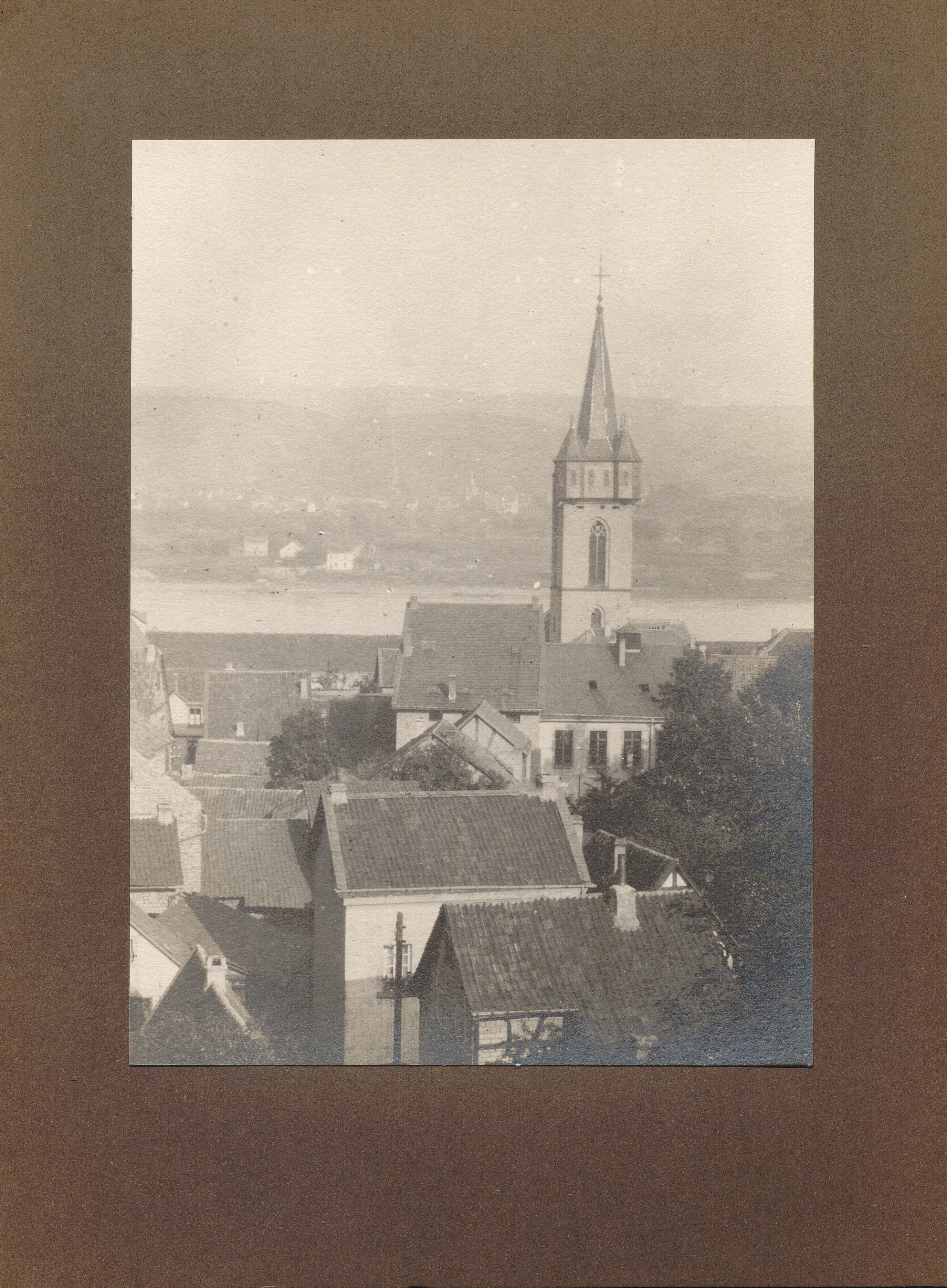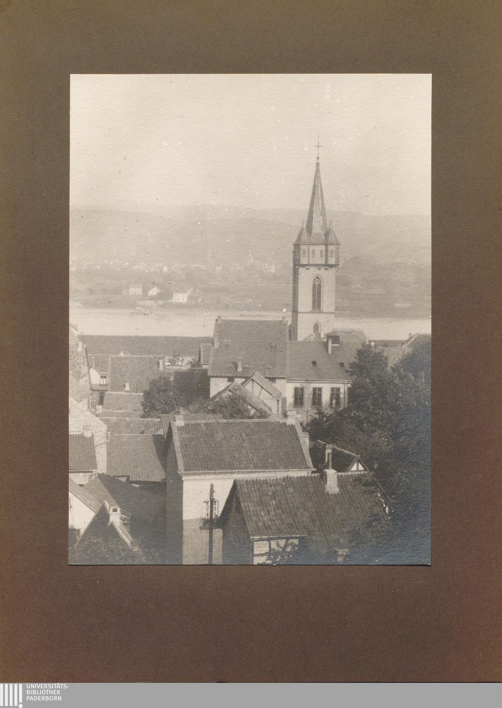 Oberwinter, Katholische Kirche, von der Höhe aus gesehen / von Erwin Quedenfeldt