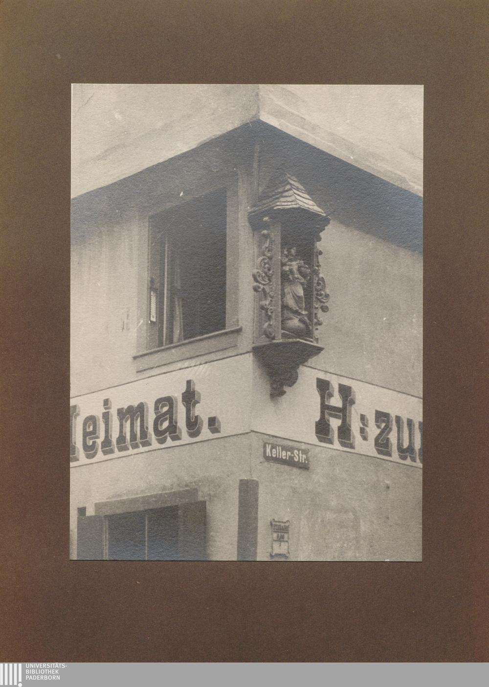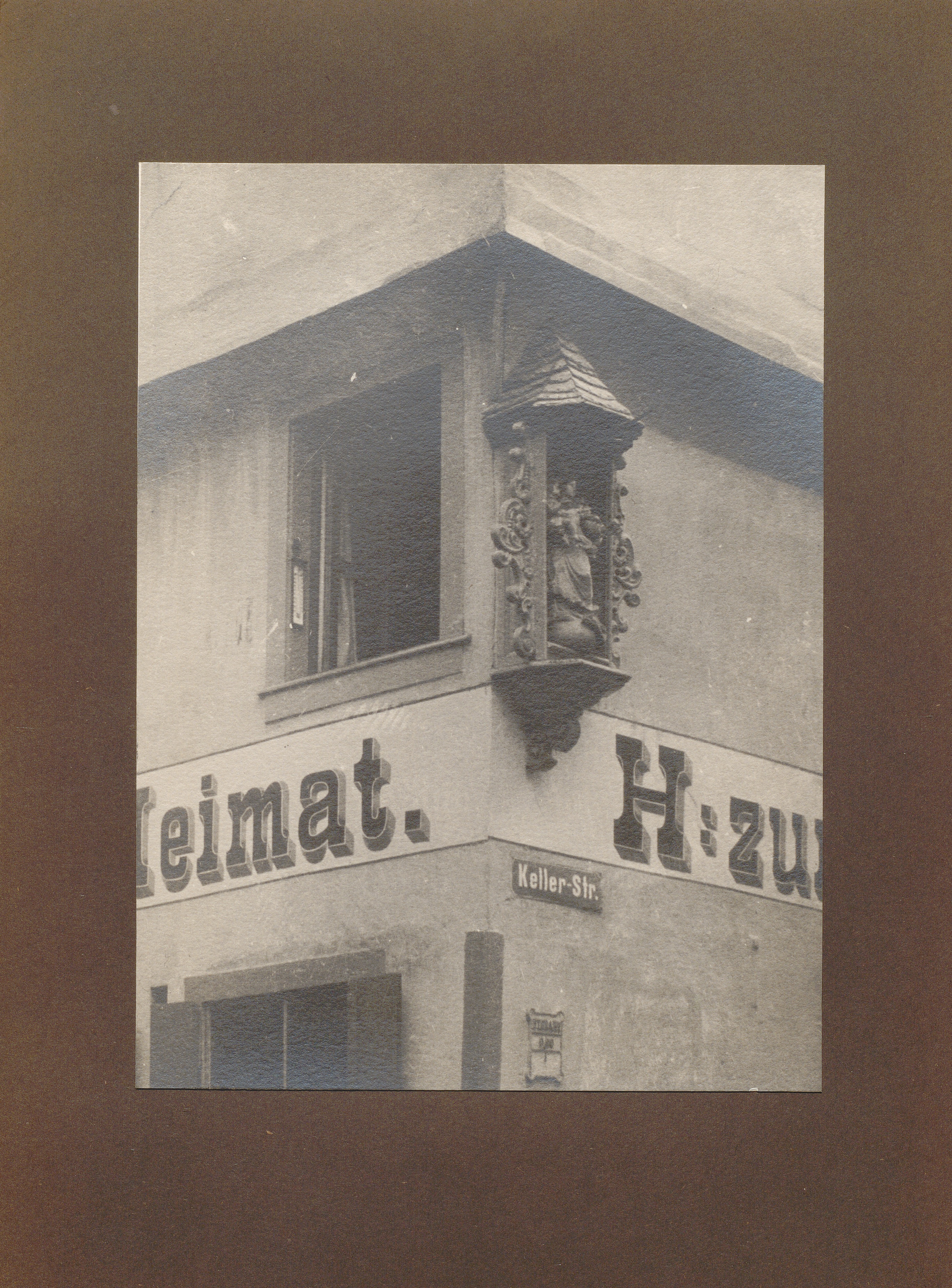 Linz, Madonnen-Eckfigur am Hause Ecke Kellerstraße, Geburtshaus von Joseph von Keller / von Erwin Quedenfeldt