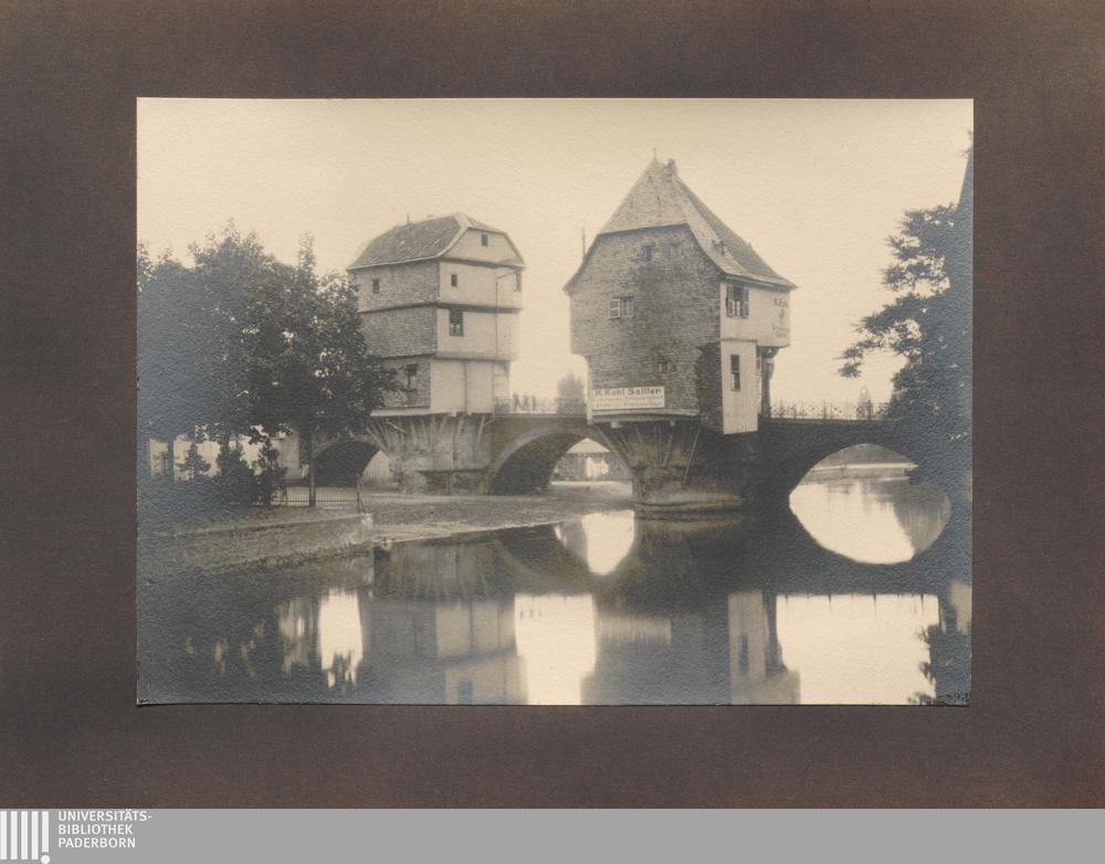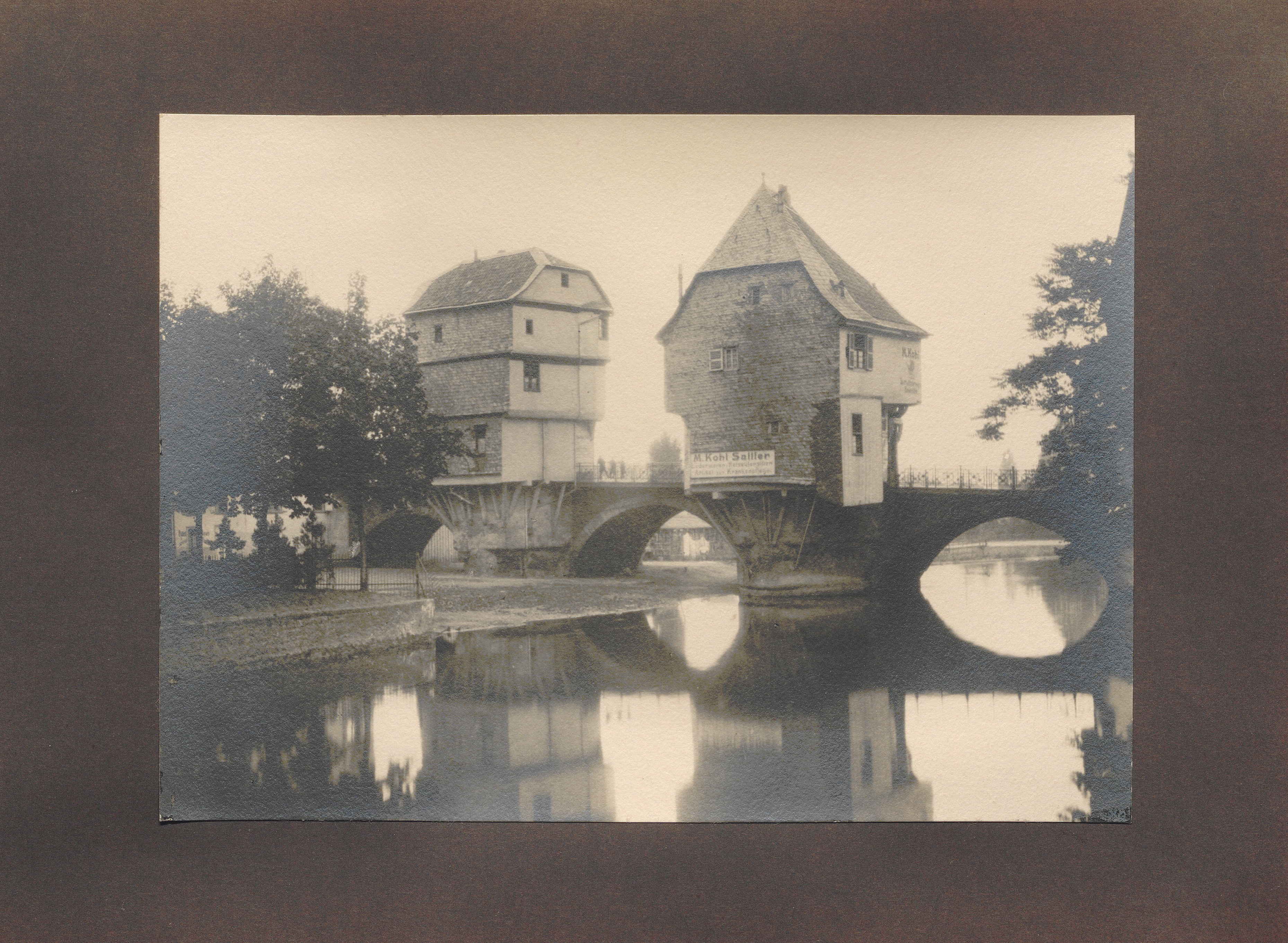 Kreuznach, Alte Häuser auf der alten Brücke, Seitenansicht / von Erwin Quedenfeldt