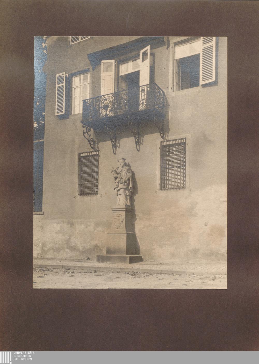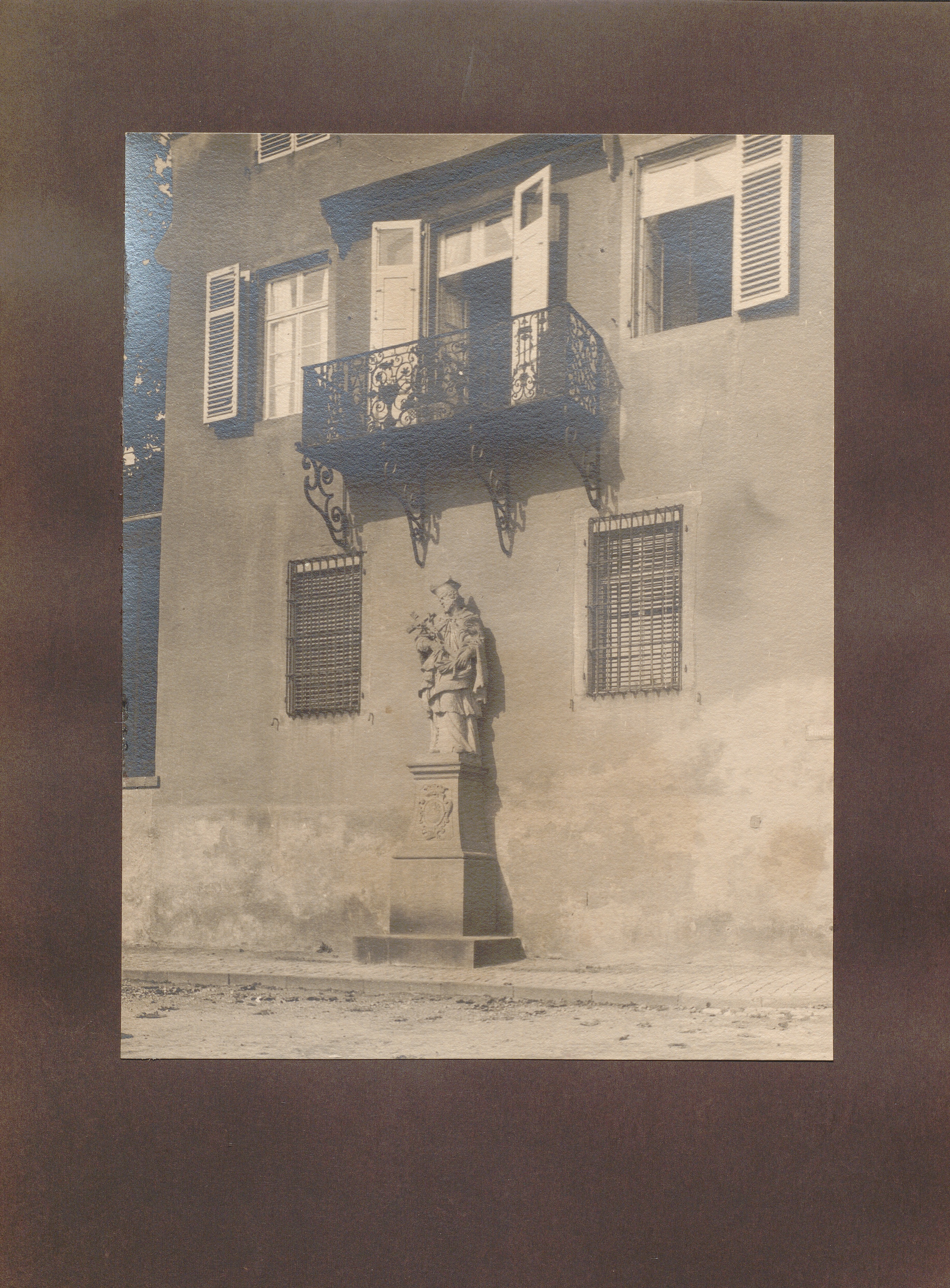 Eltville, Heiligenfigur mit Balkon am Hause Ecke Rheinstraße und Rosengasse / von Erwin Quedenfeldt