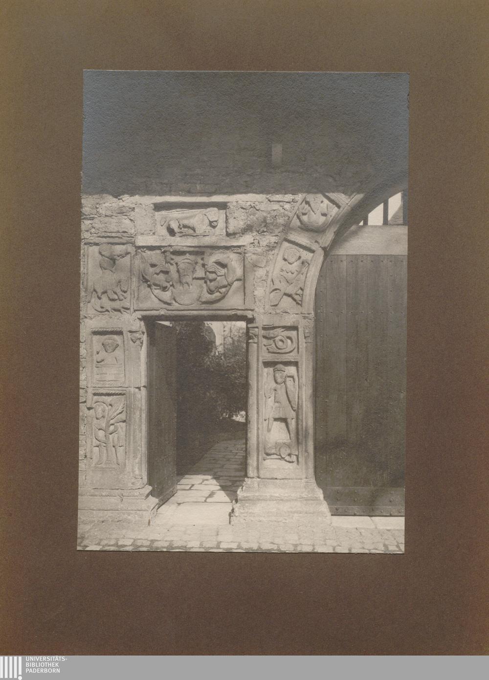 Remagen, Romanisches Tor an der katholischen Kirche, Details der Relief-Figuren / von Erwin Quedenfeldt