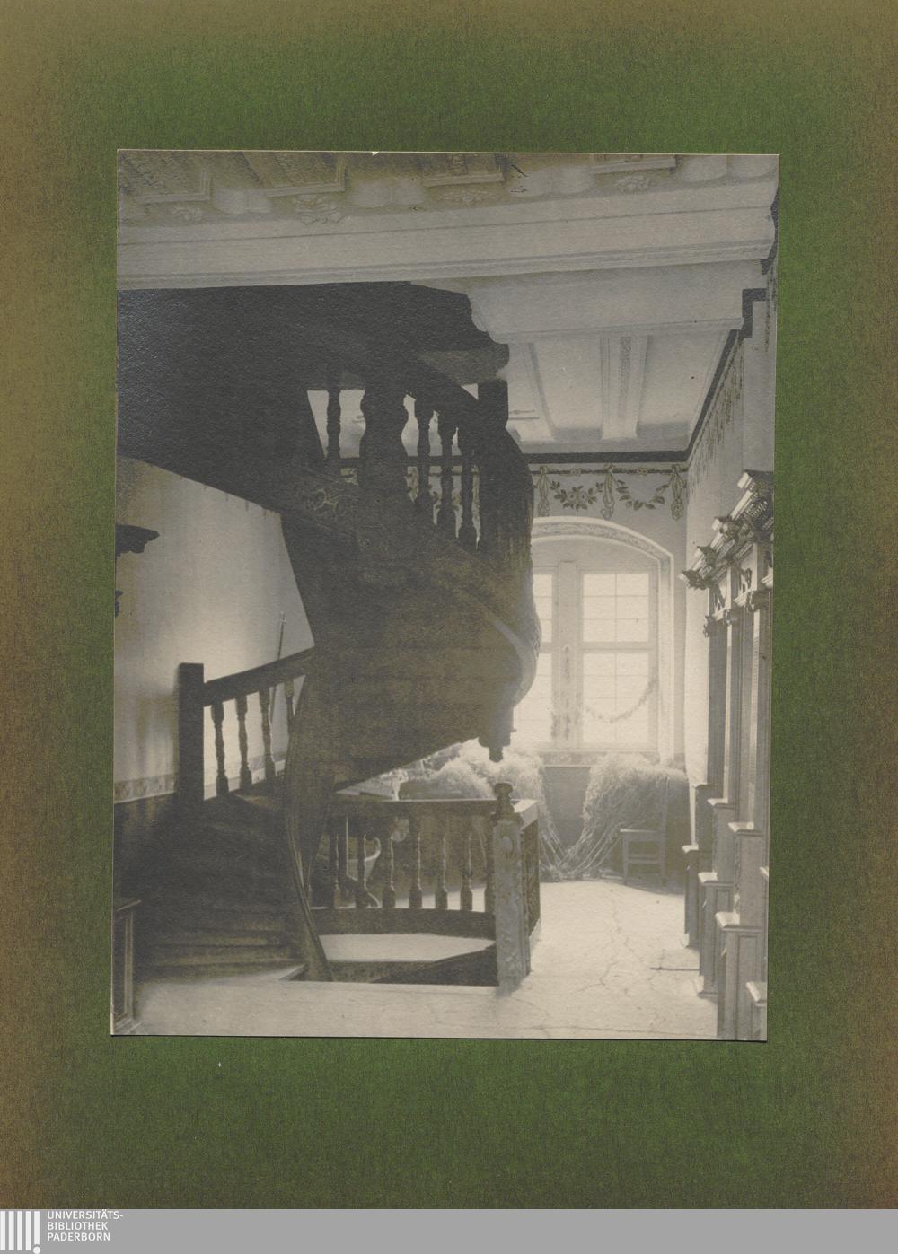 Bruttig, Altes Renaissancehaus, innere Wendeltreppe, Wölbung im ersten Stock mit Flur / von Erwin Quedenfeldt
