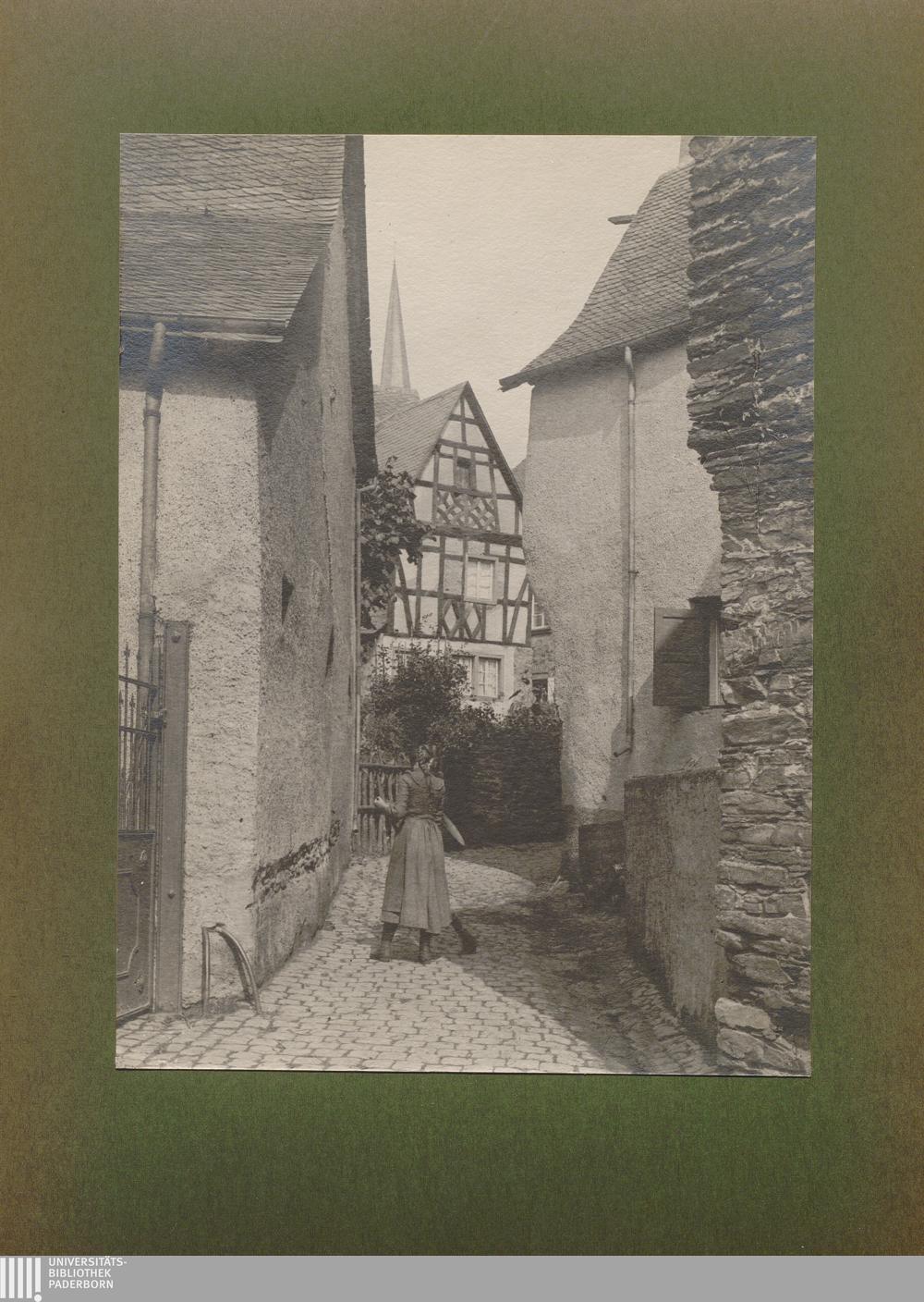 Clotten, Straße mit Blick auf das Fachwerkhaus Nr. 132 / von Erwin Quedenfeldt