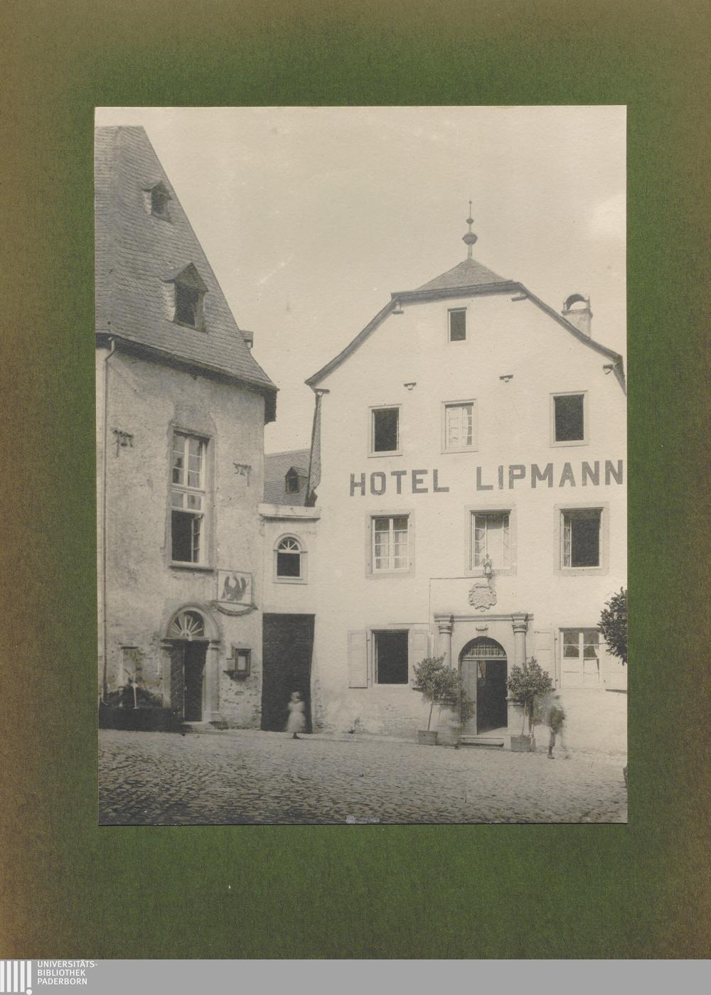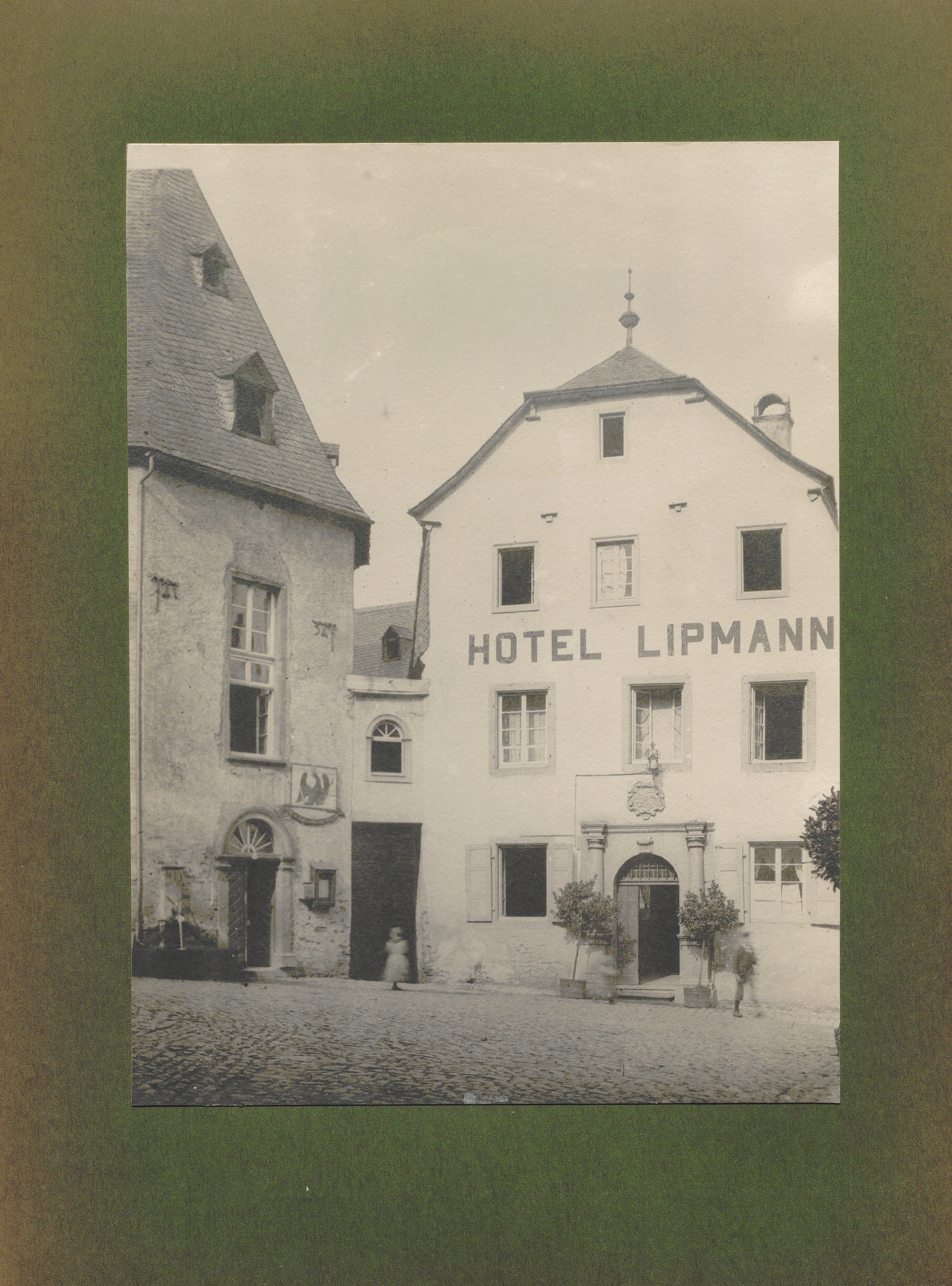 Beilstein, Alter Metternichscher Hof (Hotel Lipmann), Ansicht vom Platz aus mit Zehnthaus / von Erwin Quedenfeldt