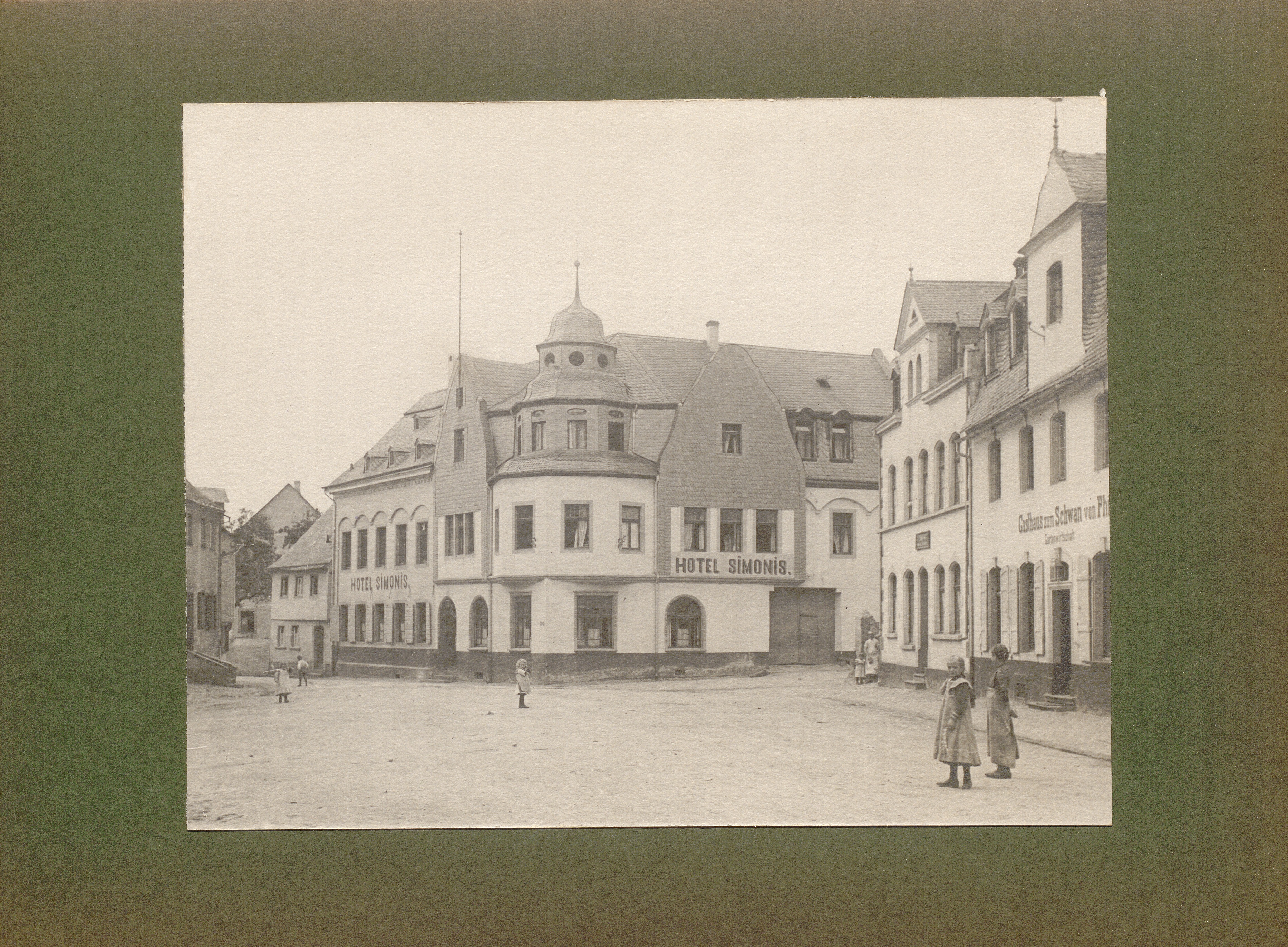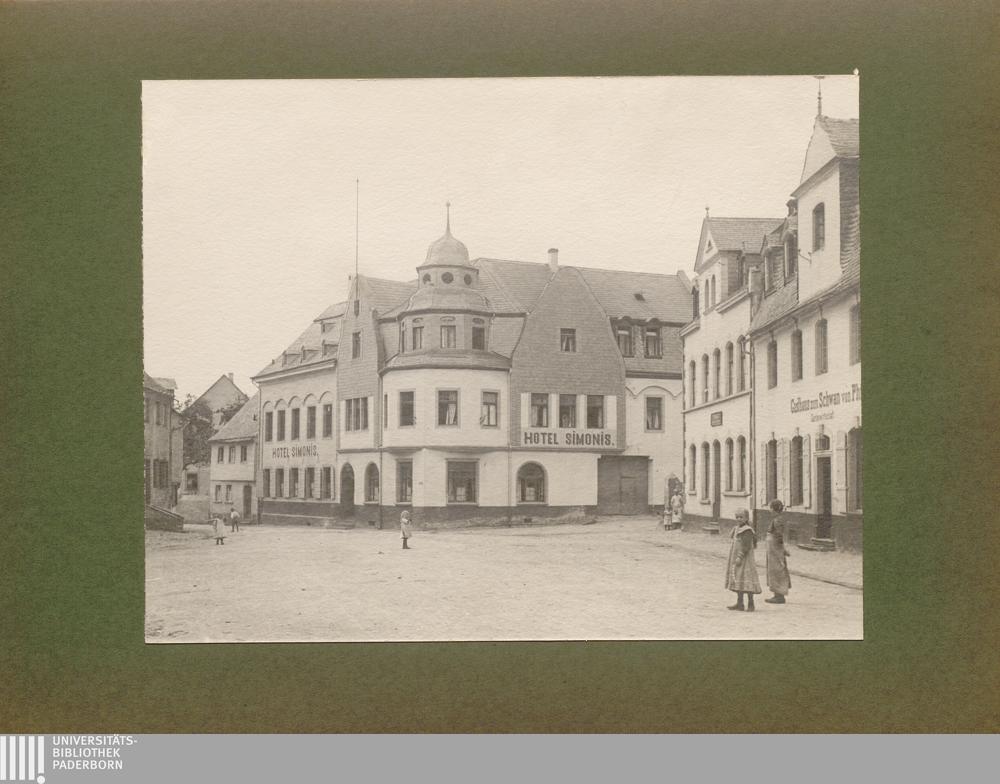Cobern, Schiefer-Giebelhäuser am Markt mit Hotel Simonis / von Erwin Quedenfeldt