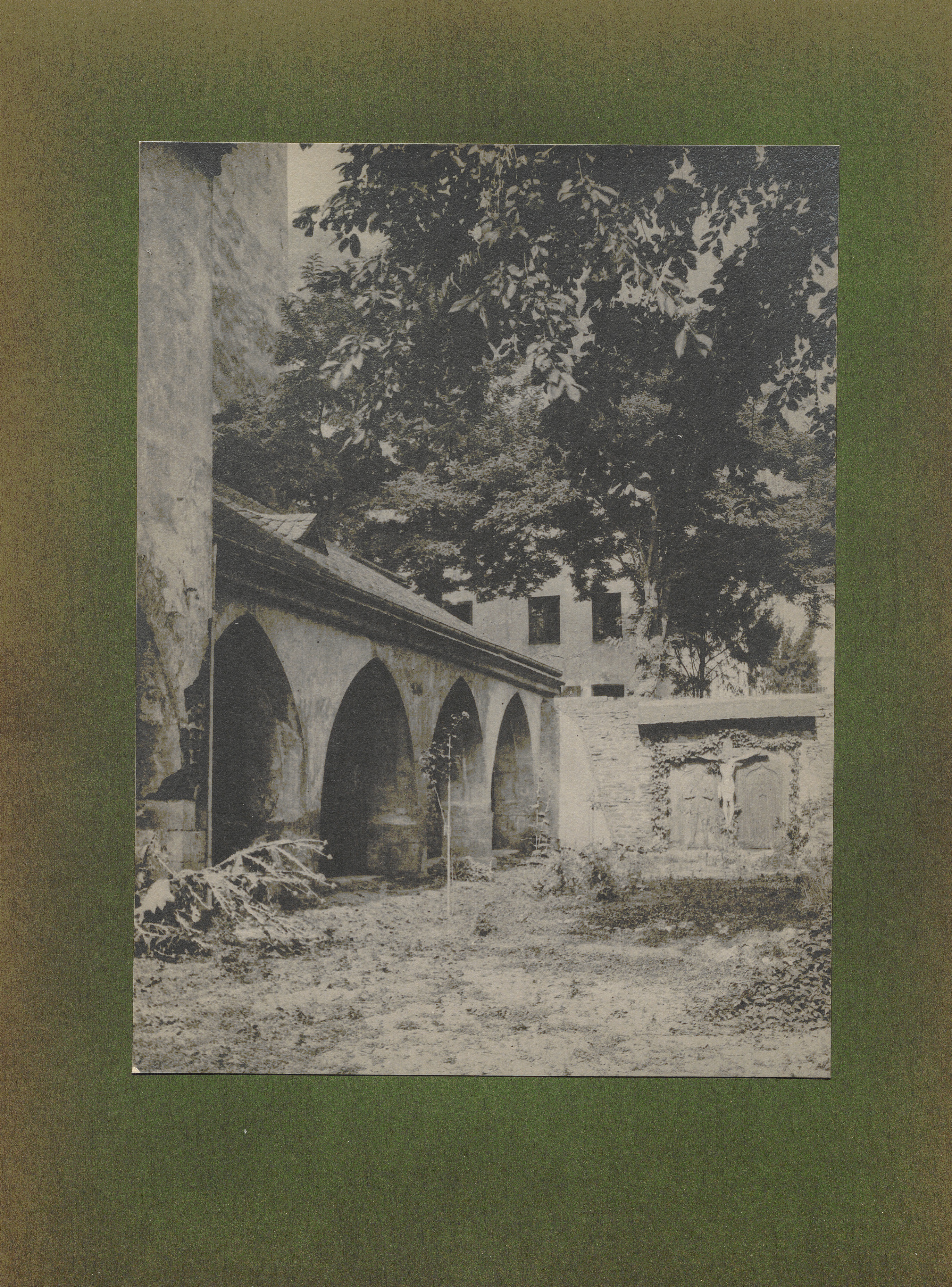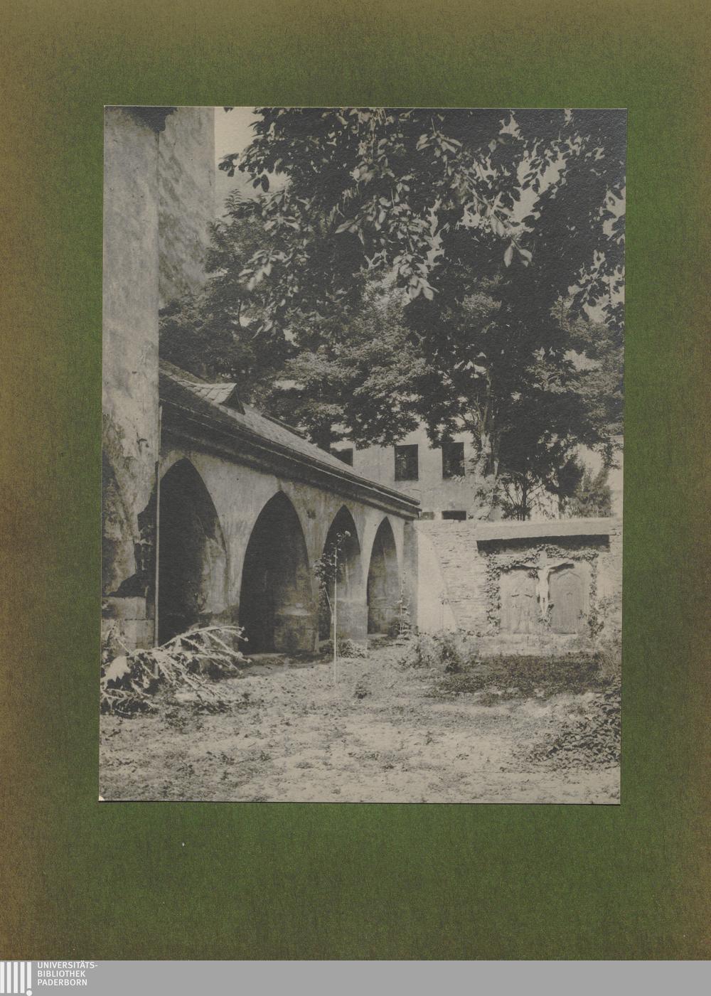 Carden, Hof mit Kreuzgang und Kreuzigungsgruppe an der Klosterkriche / von Erwin Quedenfeldt