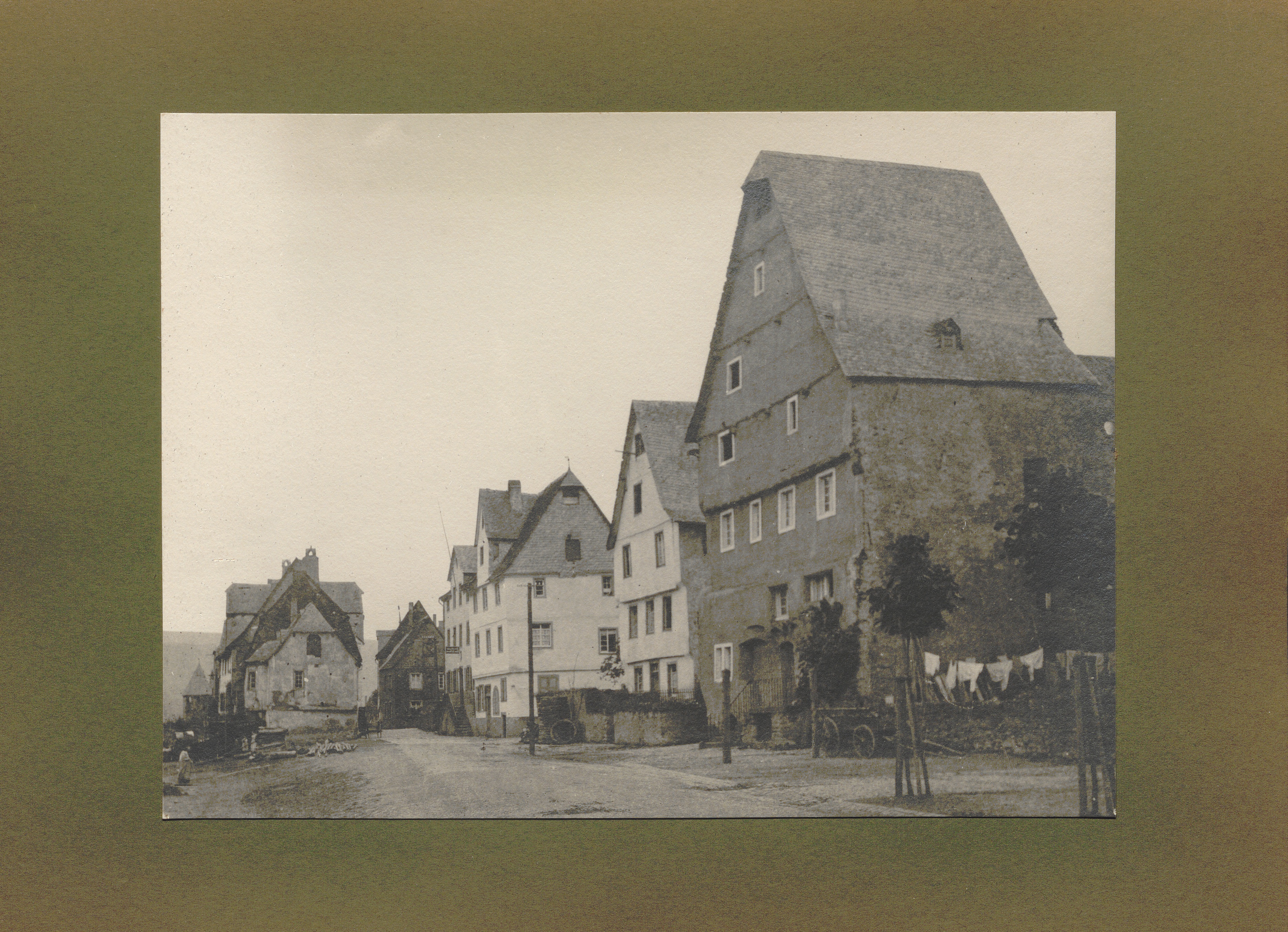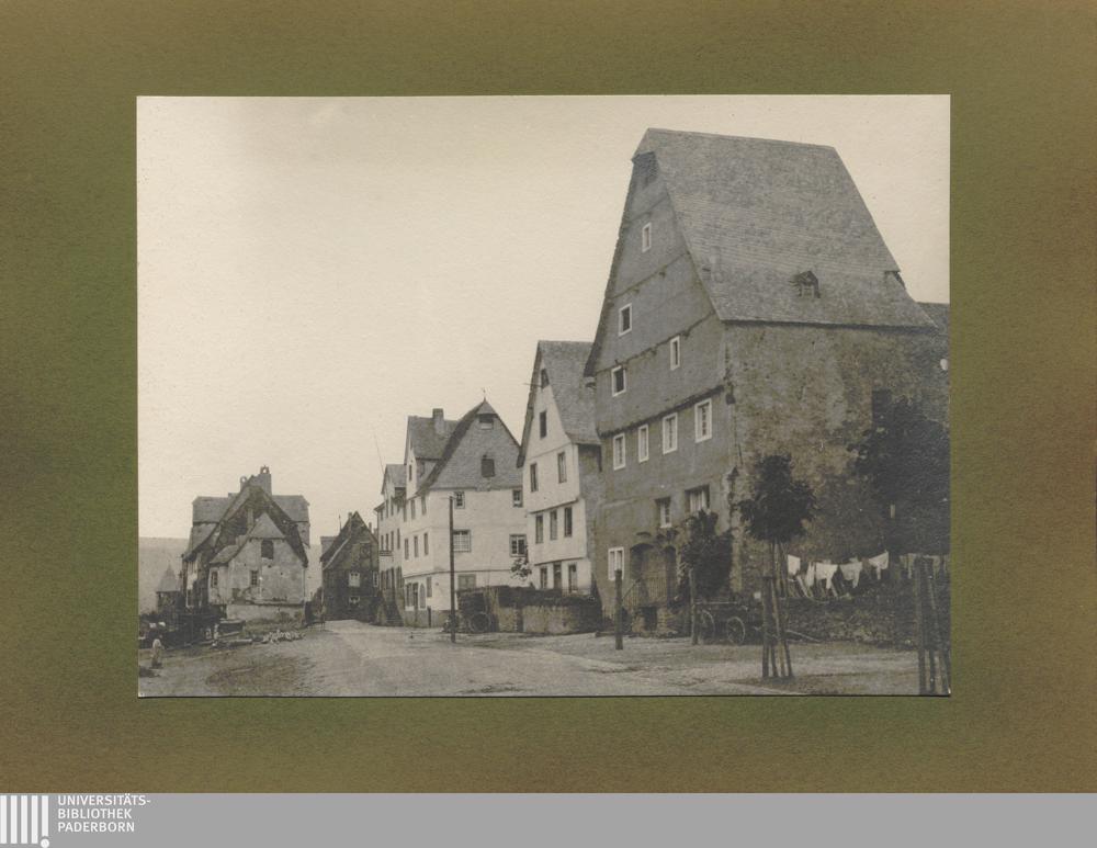 Ediger, Straße an der Mosel mit hohen Giebelhäusern / von Erwin Quedenfeldt