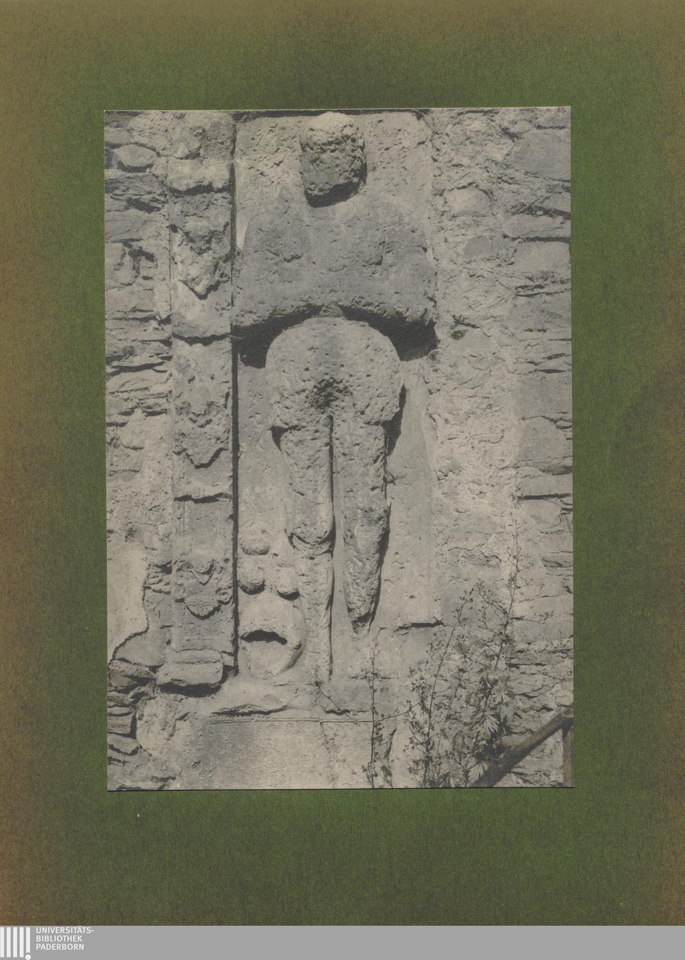 Carden, Steinerne Figur (Grabplatte) an der Kreuzigungsgruppe, 1557 / von Erwin Quedenfeldt