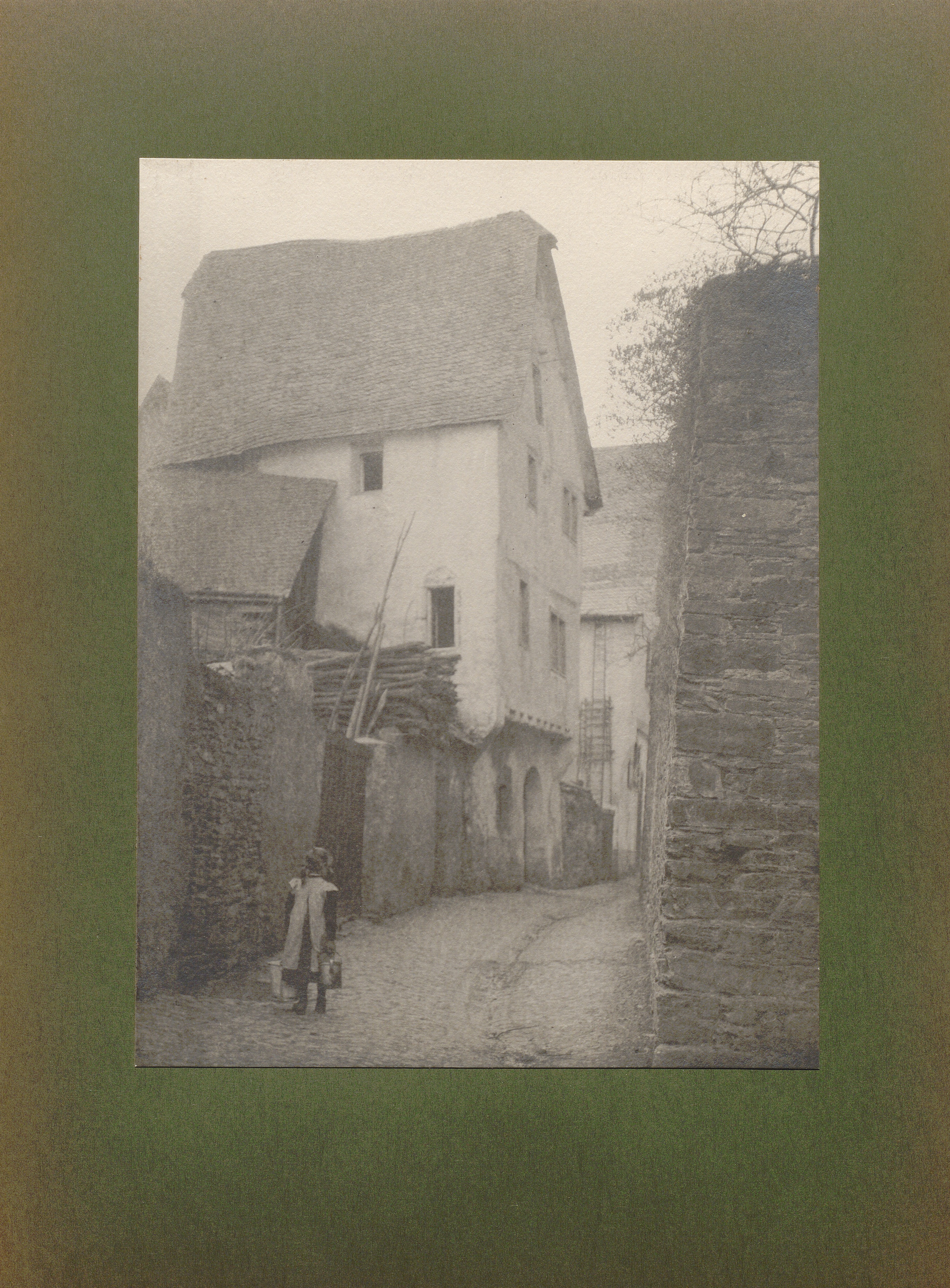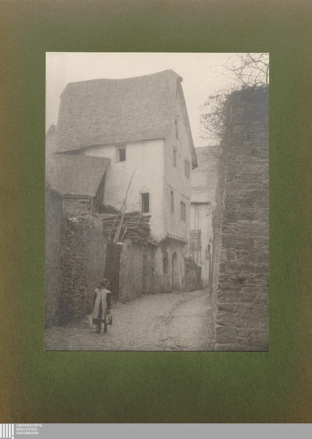 Ediger, Kleine Gasse mit altem Haus mit Überbau / von Erwin Quedenfeldt