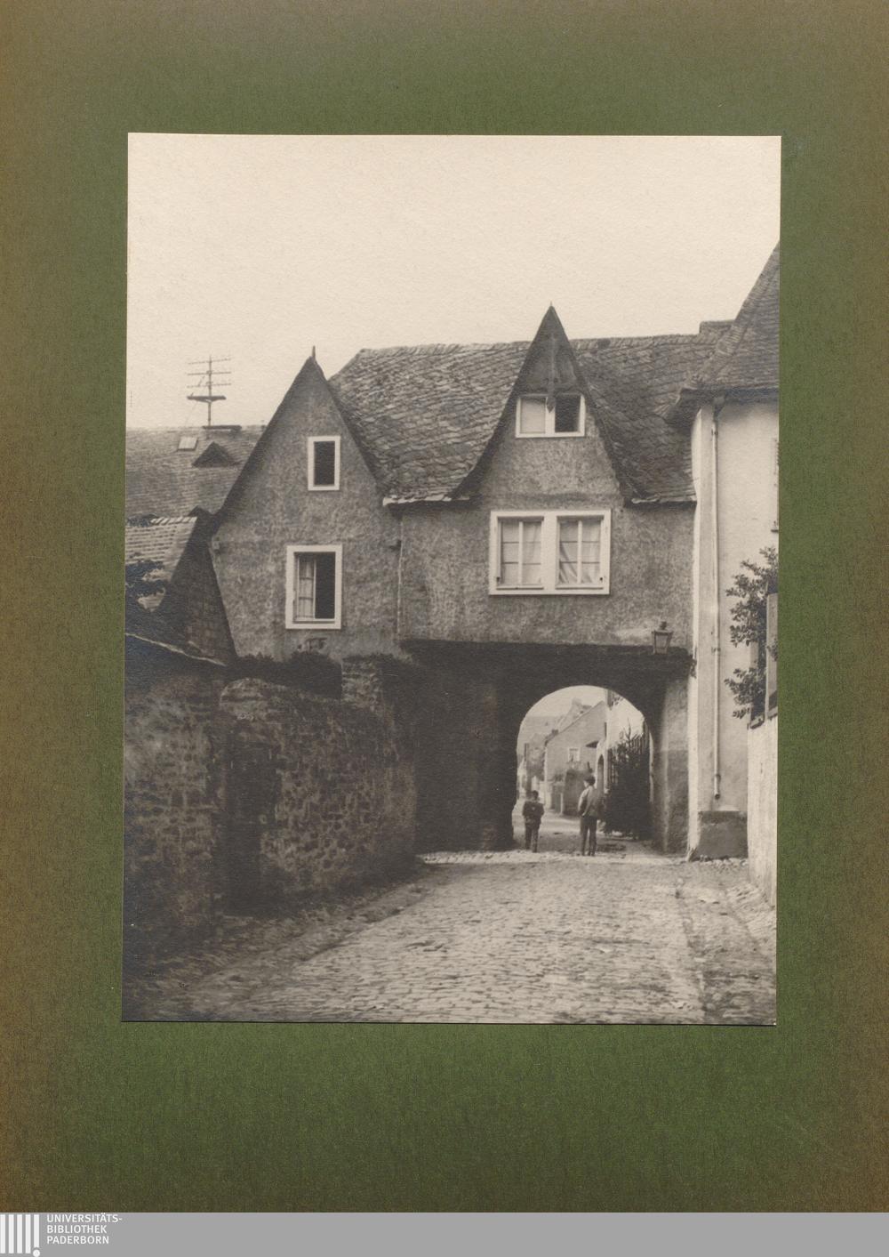 Carden, Giebelhaus mit Straßen-Torbogen, der Kirche zugewandte Seite / von Erwin Quedenfeldt