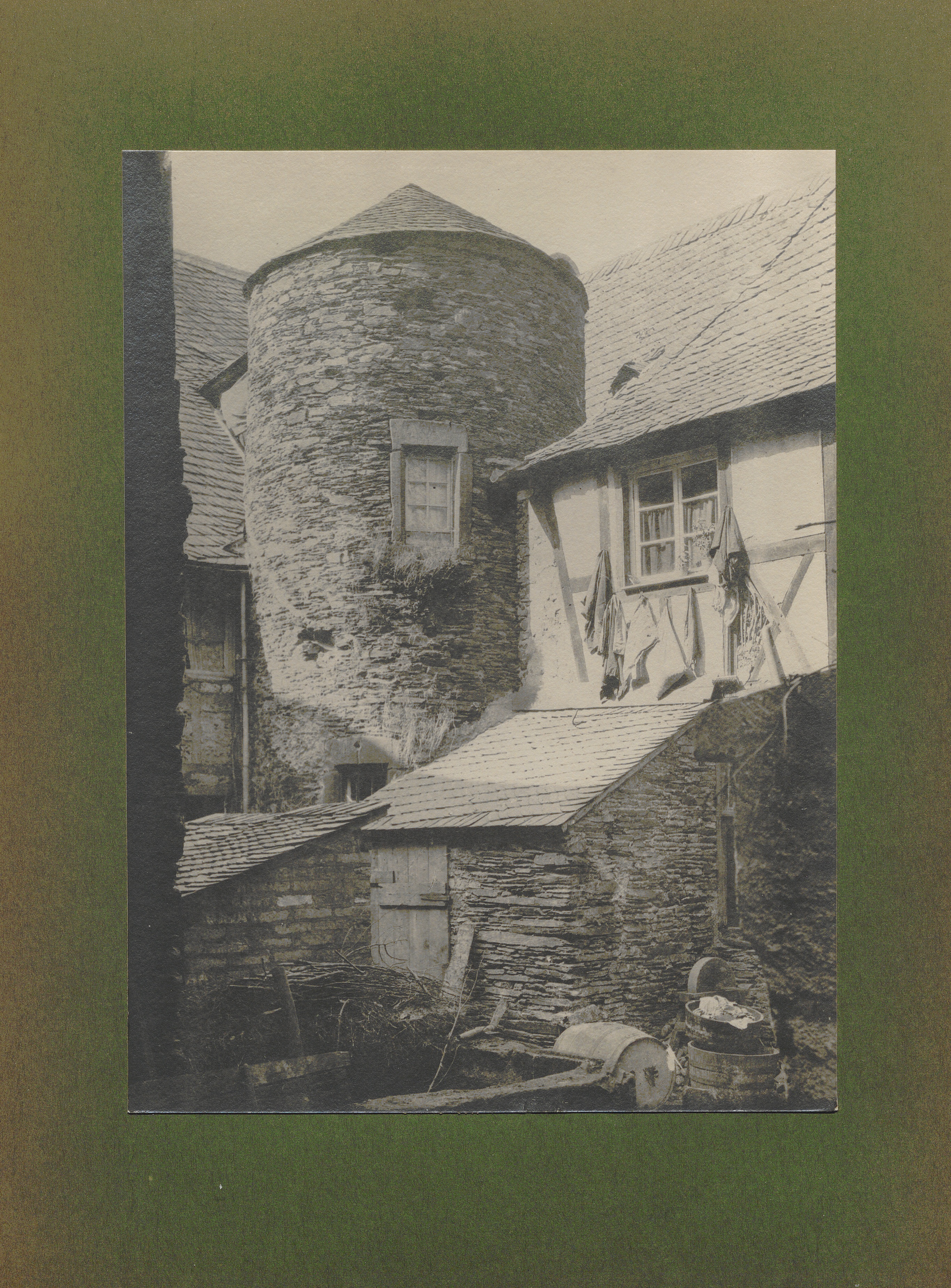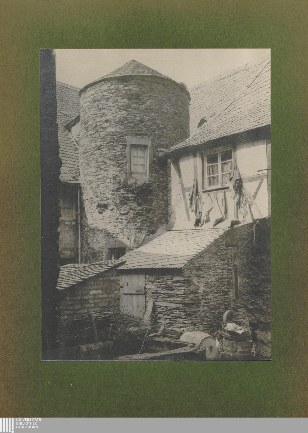 Beilstein, Hof im Gasthaus 'Zur Burg Metternich' mit altem rundem Turm / von Erwin Quedenfeldt
