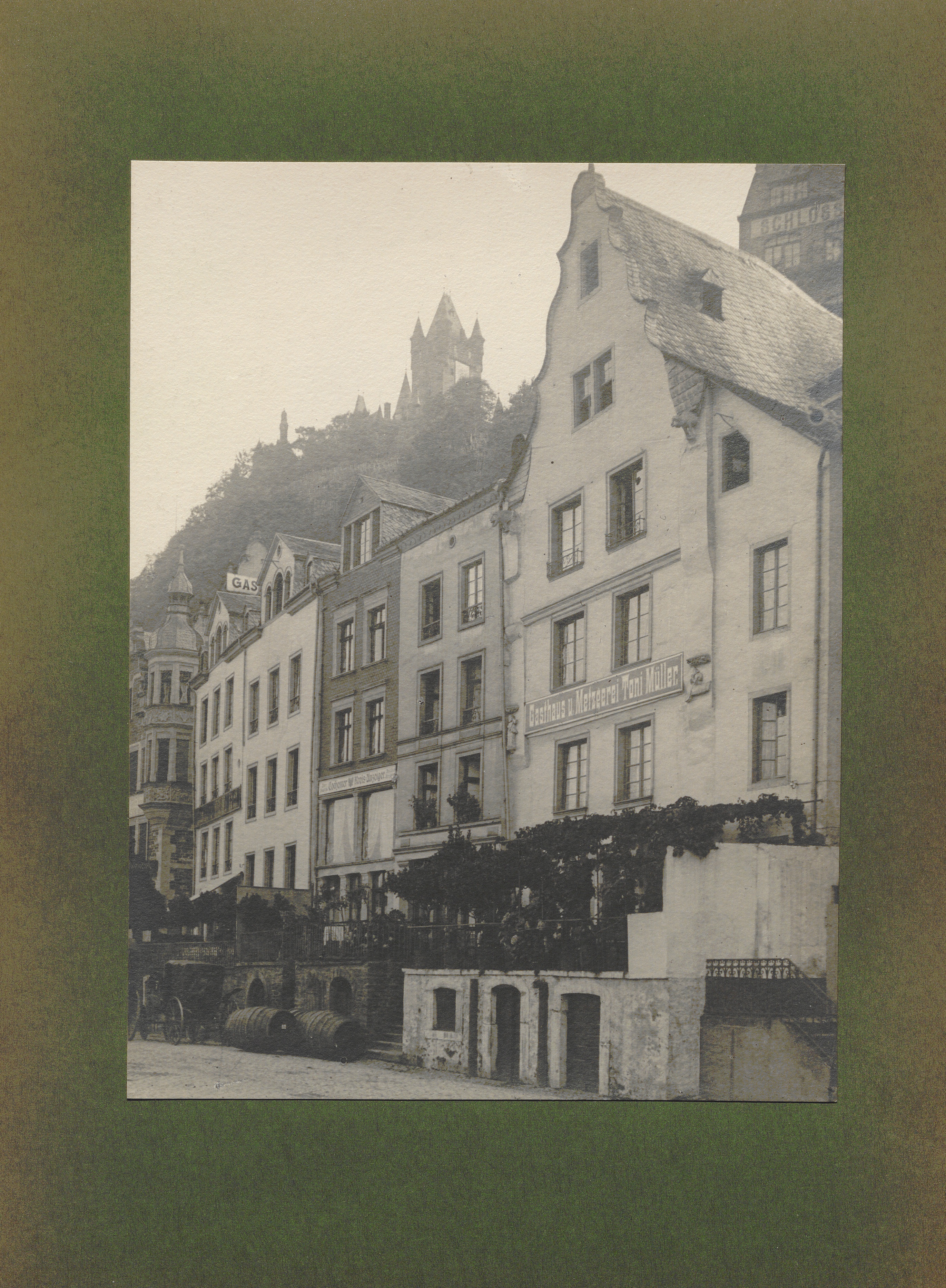 Cochem, Häuserfront an der Mosel mit Burg / von Erwin Quedenfeldt
