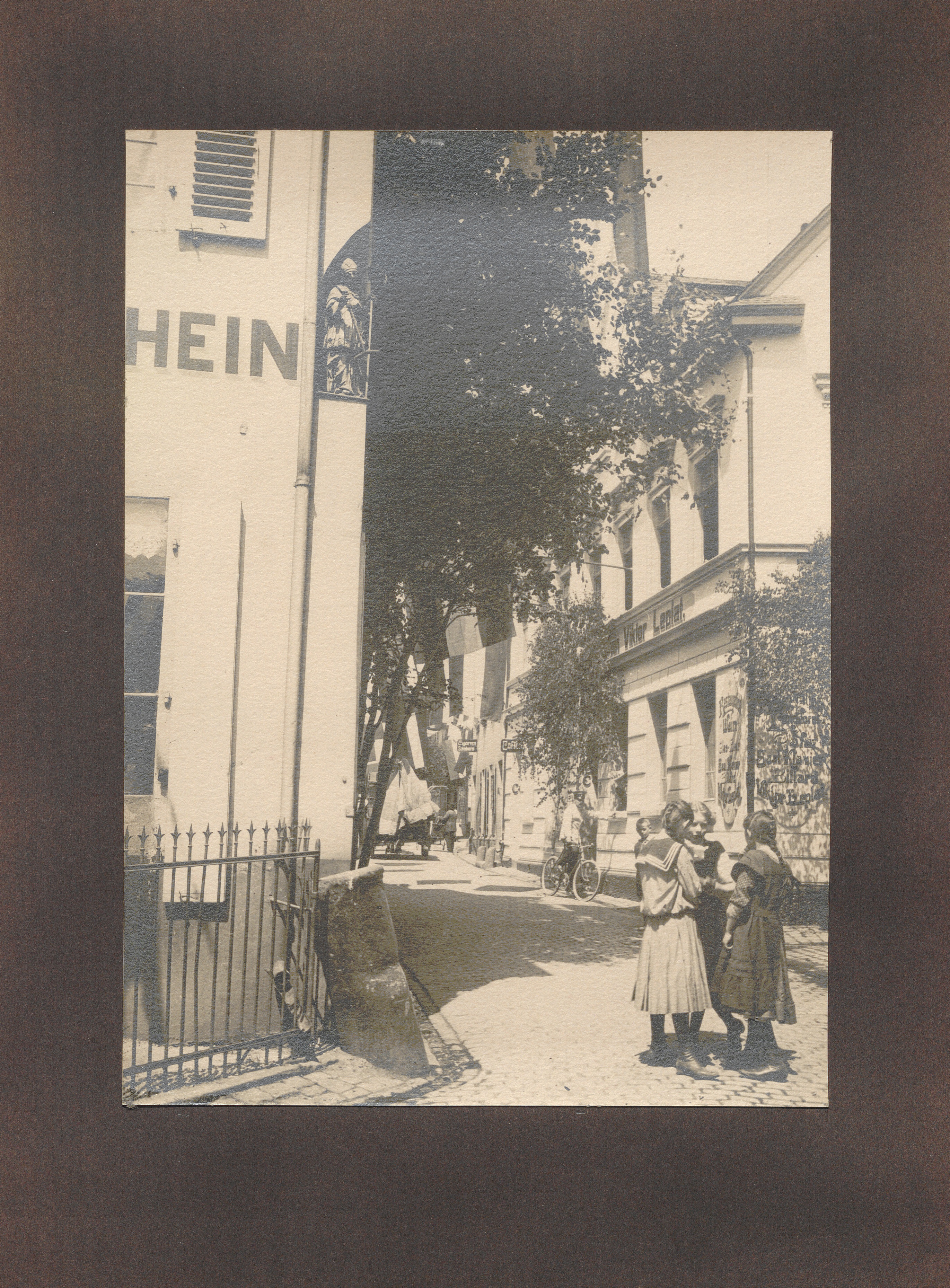 Vallendar, Ecke am Gasthaus Vater Rhein mit Heiligenfigur / von Erwin Quedenfeldt