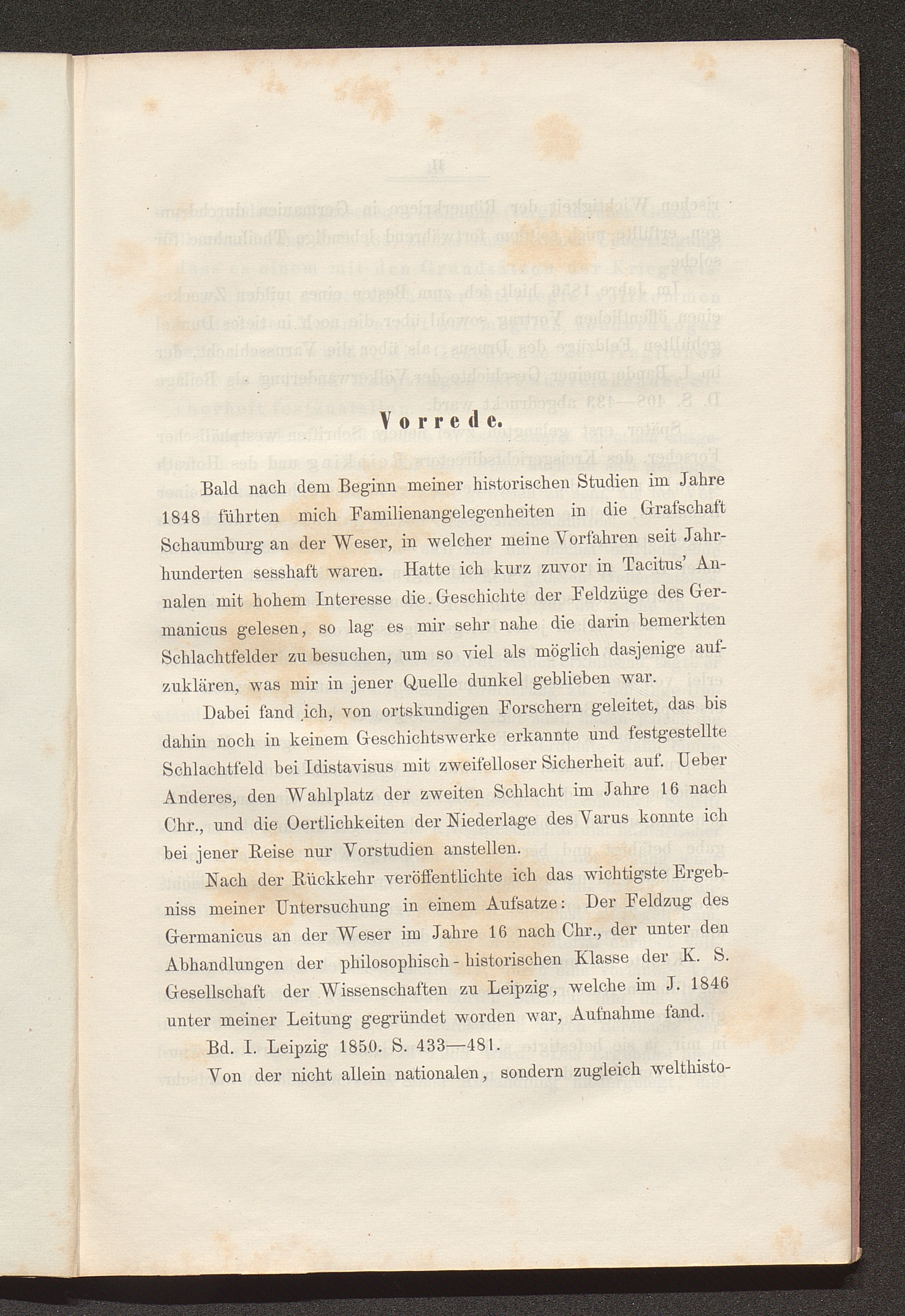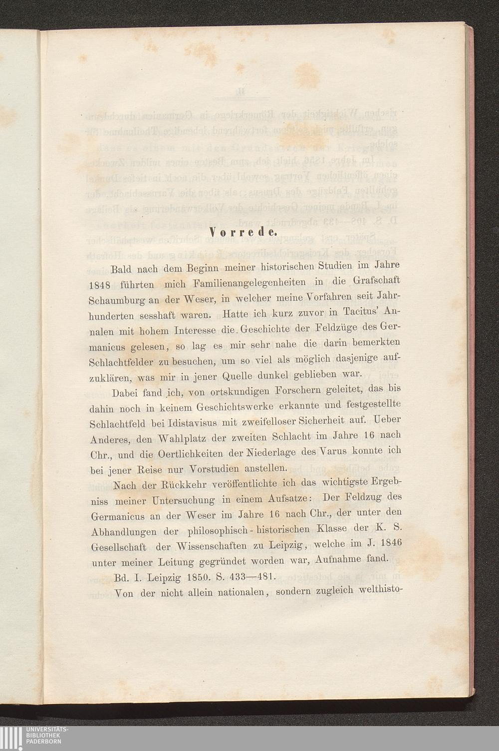 Terrainstudien zu dem Rückzuge des Varus und den Feldzügen des Germanicus : eine militärische Beleuchtung ; nebst einer Karte / von Heinrich von Abendroth. Mit einem einleitenden Vorwort von Eduard von Wietersheim