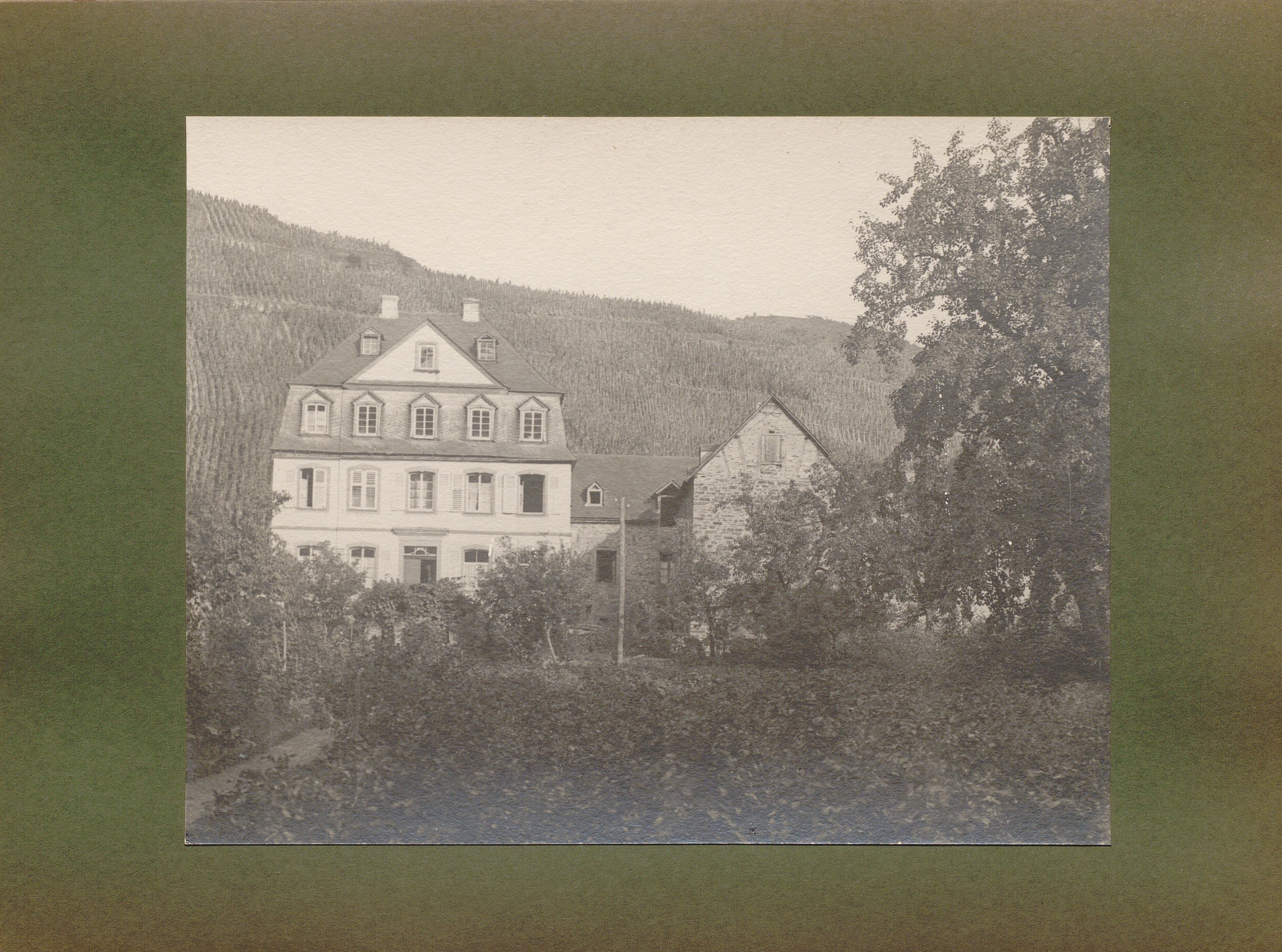 Treis, Großes Schieferhaus an der Mosel im Garten / von Erwin Quedenfeldt