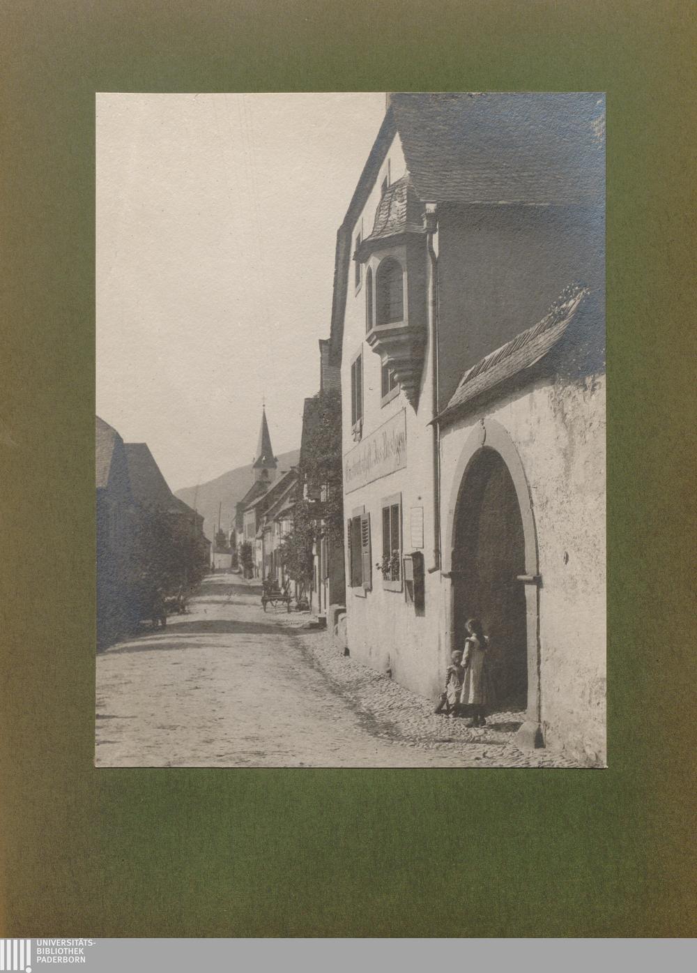 Kesten, Hauptstraße mit Kirche und altem Haus mit Erker / von Erwin Quedenfeldt