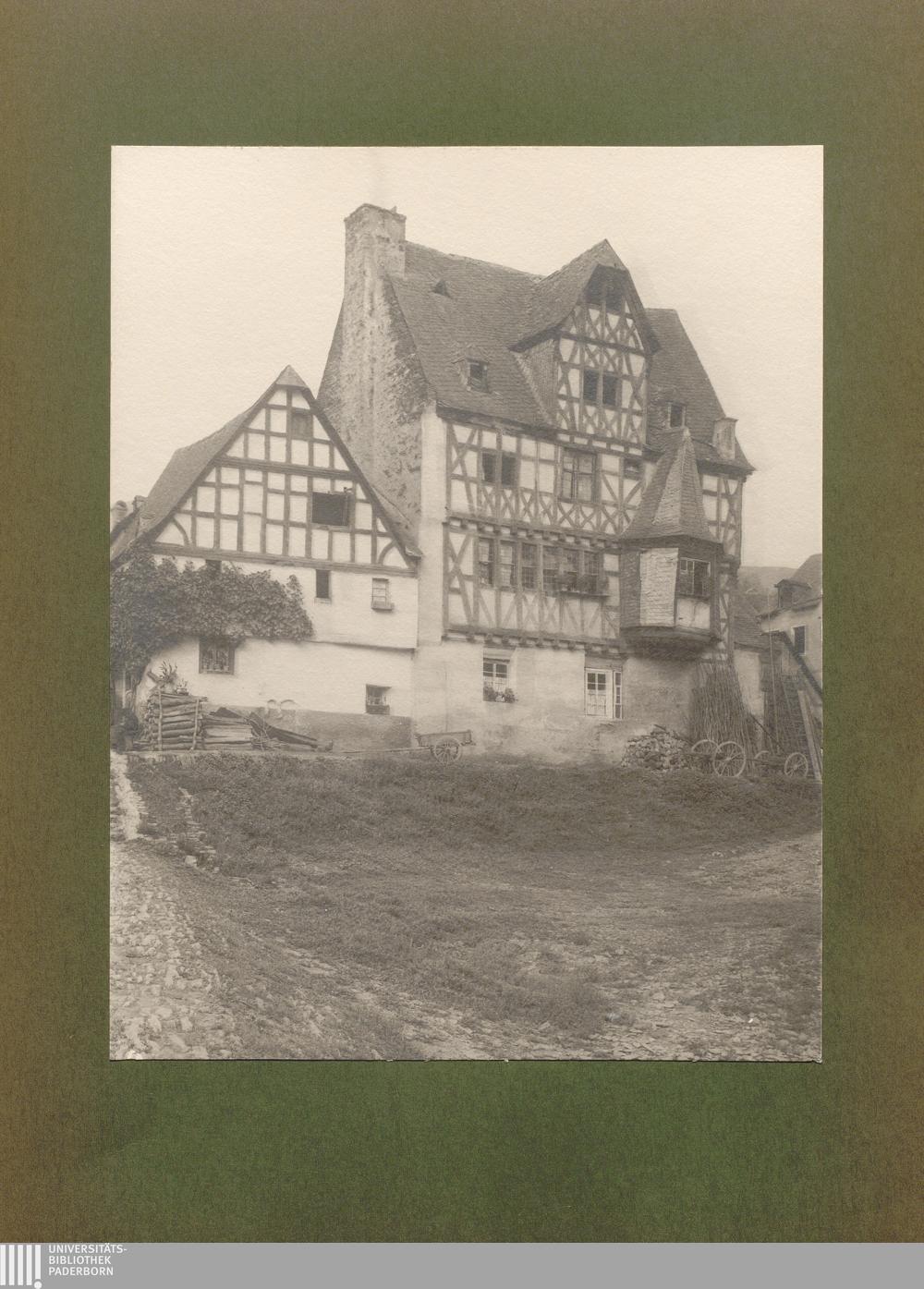Kaimt, Fachwerkhaus mit Giebel und Erker, ältestes Haus an der Mosel / von Erwin Quedenfeldt