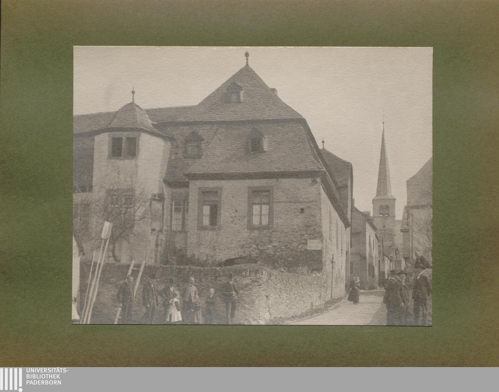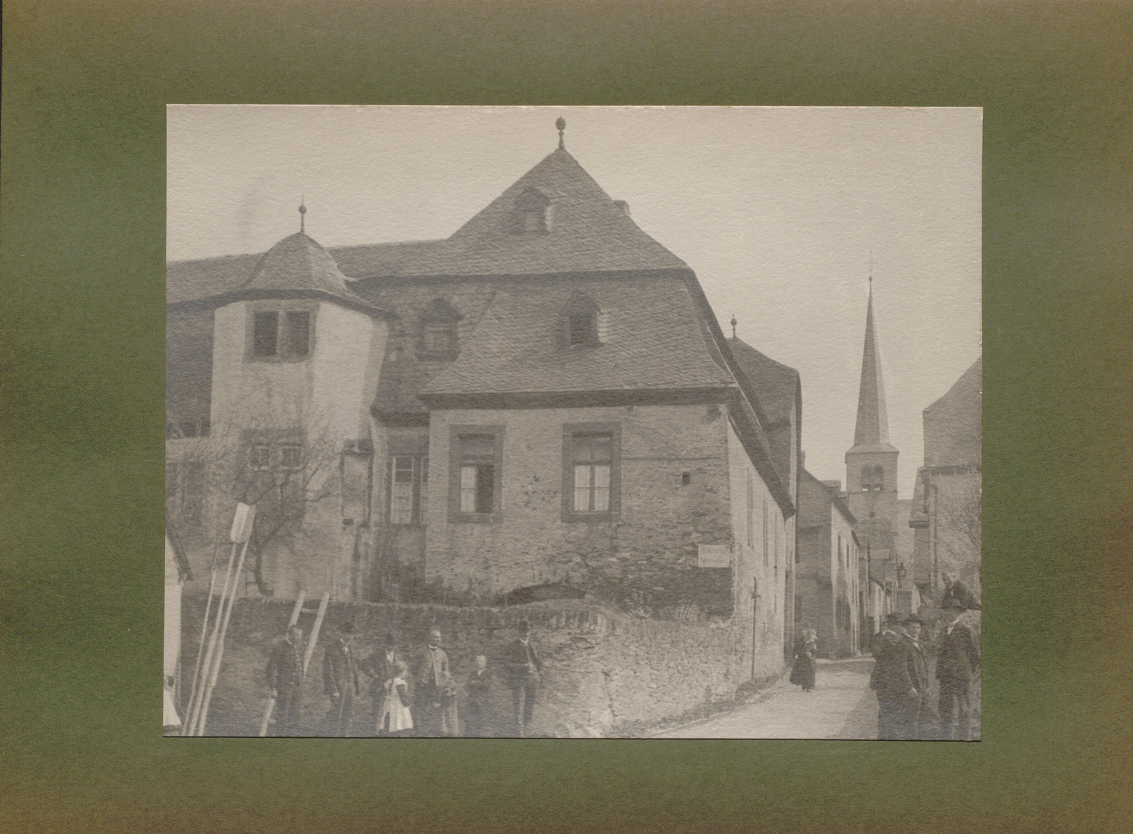 Rachtig, Alter Hof an der Fähre mit Blick auf die Kirche / von Erwin Quedenfeldt
