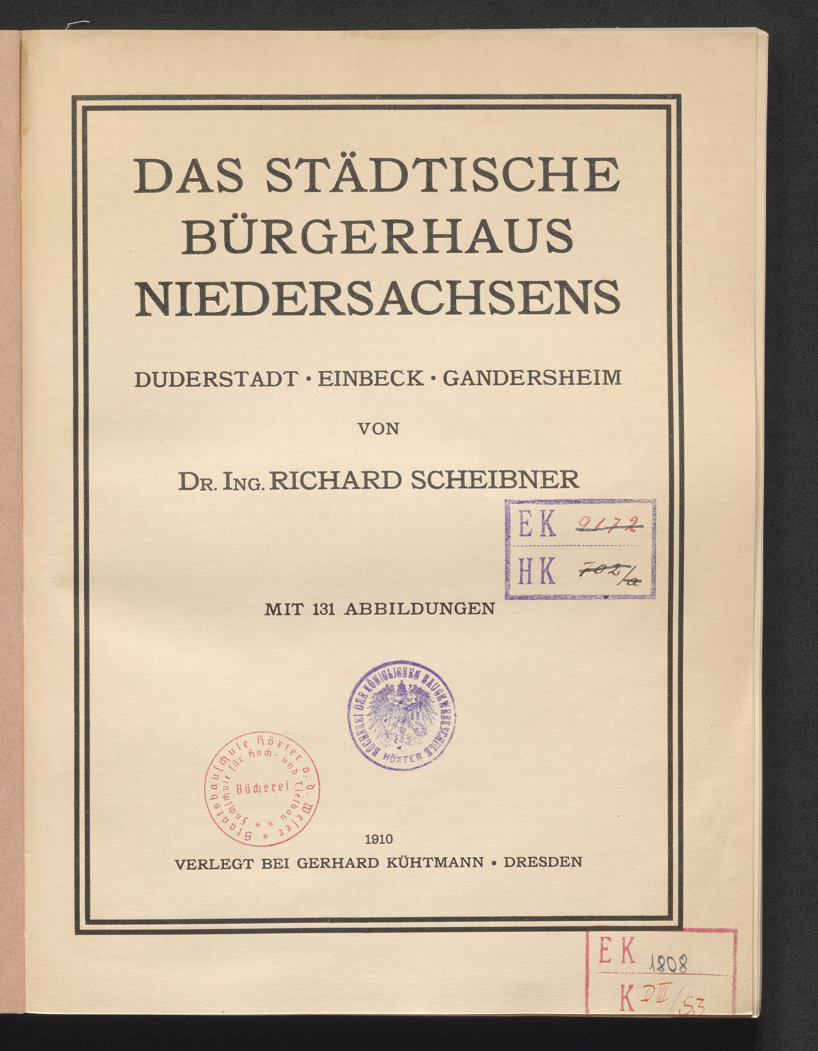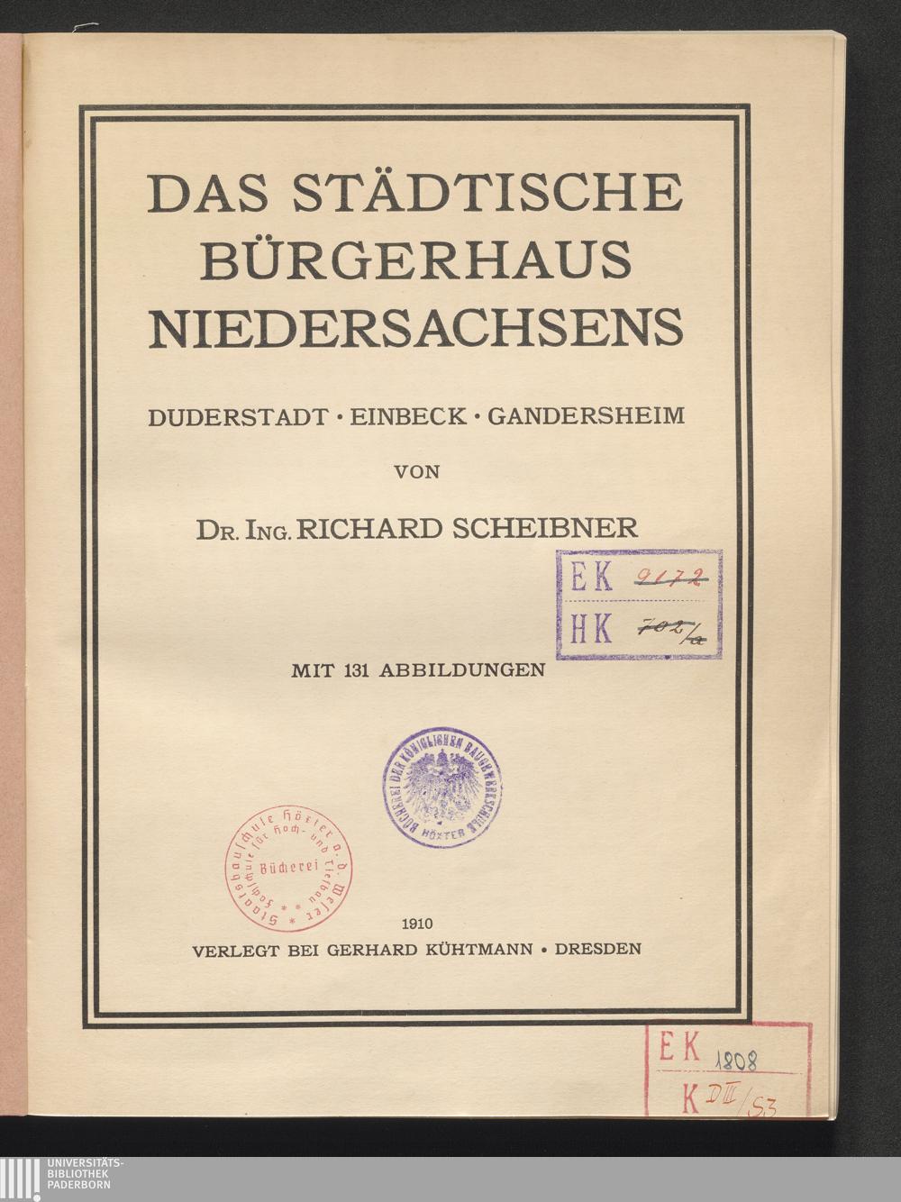 Das städtische Bürgerhaus Niedersachsens : Duderstadt, Einbeck, Gandersheim / von Richard Scheibner