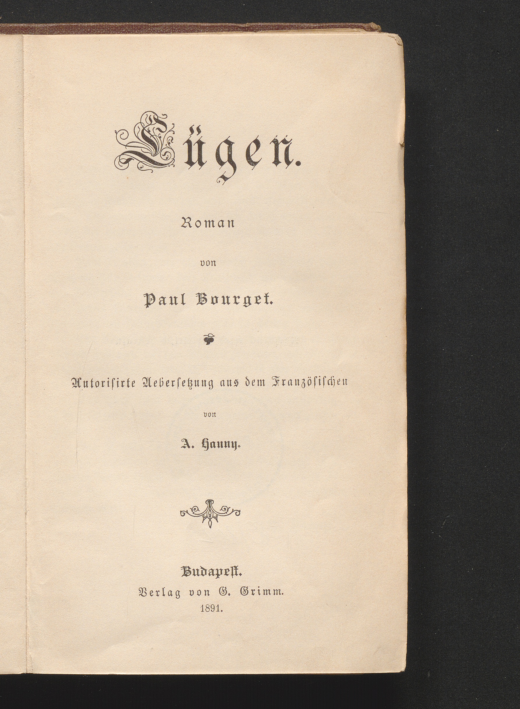 Lügen : Roman / von Paul Bourget. Autoris. Übers. aus dem Franz. von A. Hanny