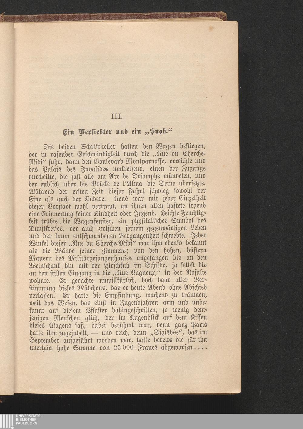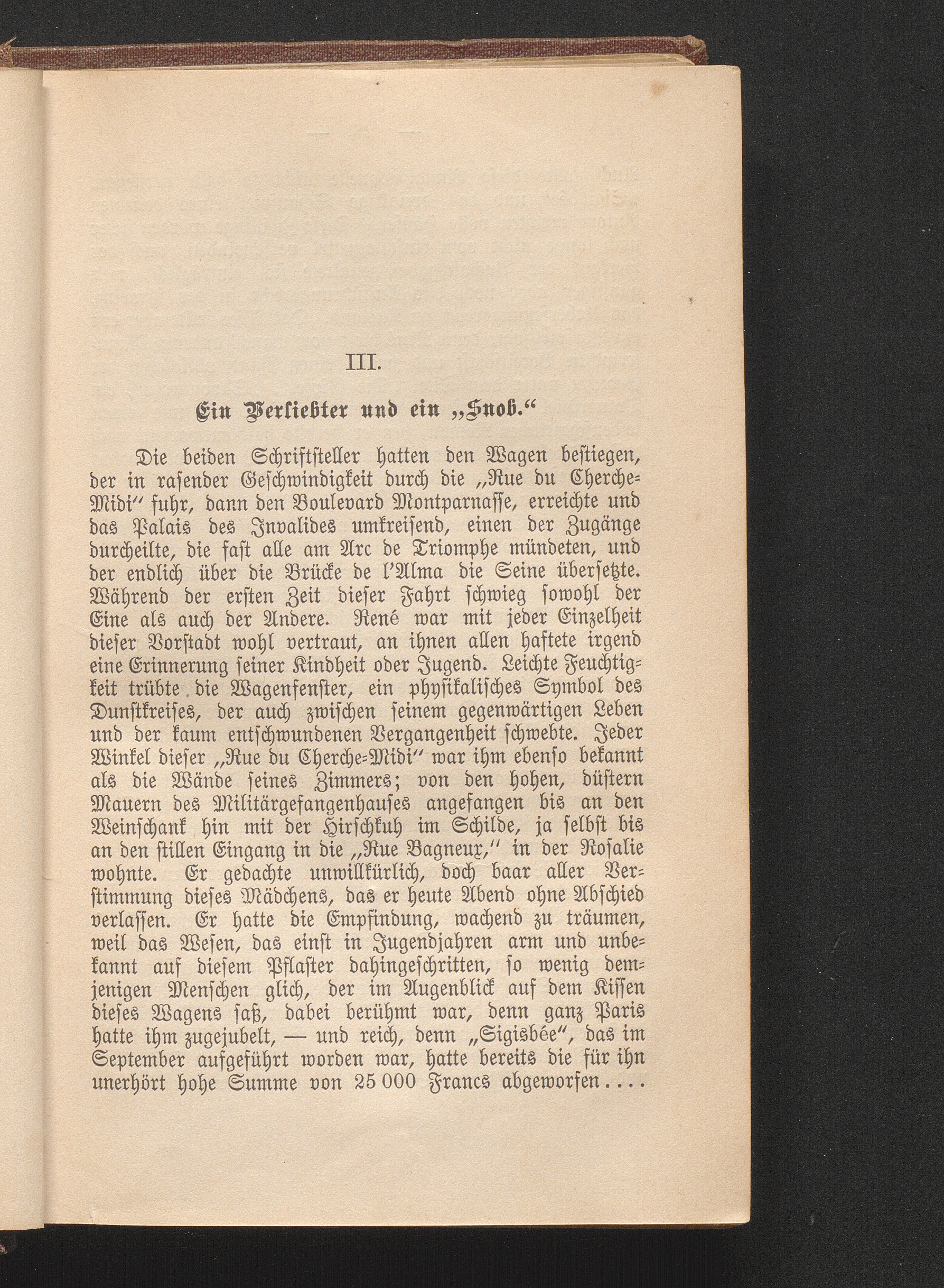 III. Ein Verliebter und ein "Snob".