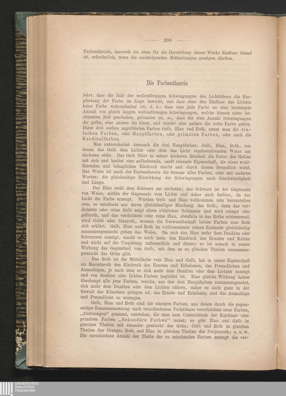 Die Farbentheorie. Die Haupt-, Kardinal- oder primären Farben. Die sekundären Farben[...]