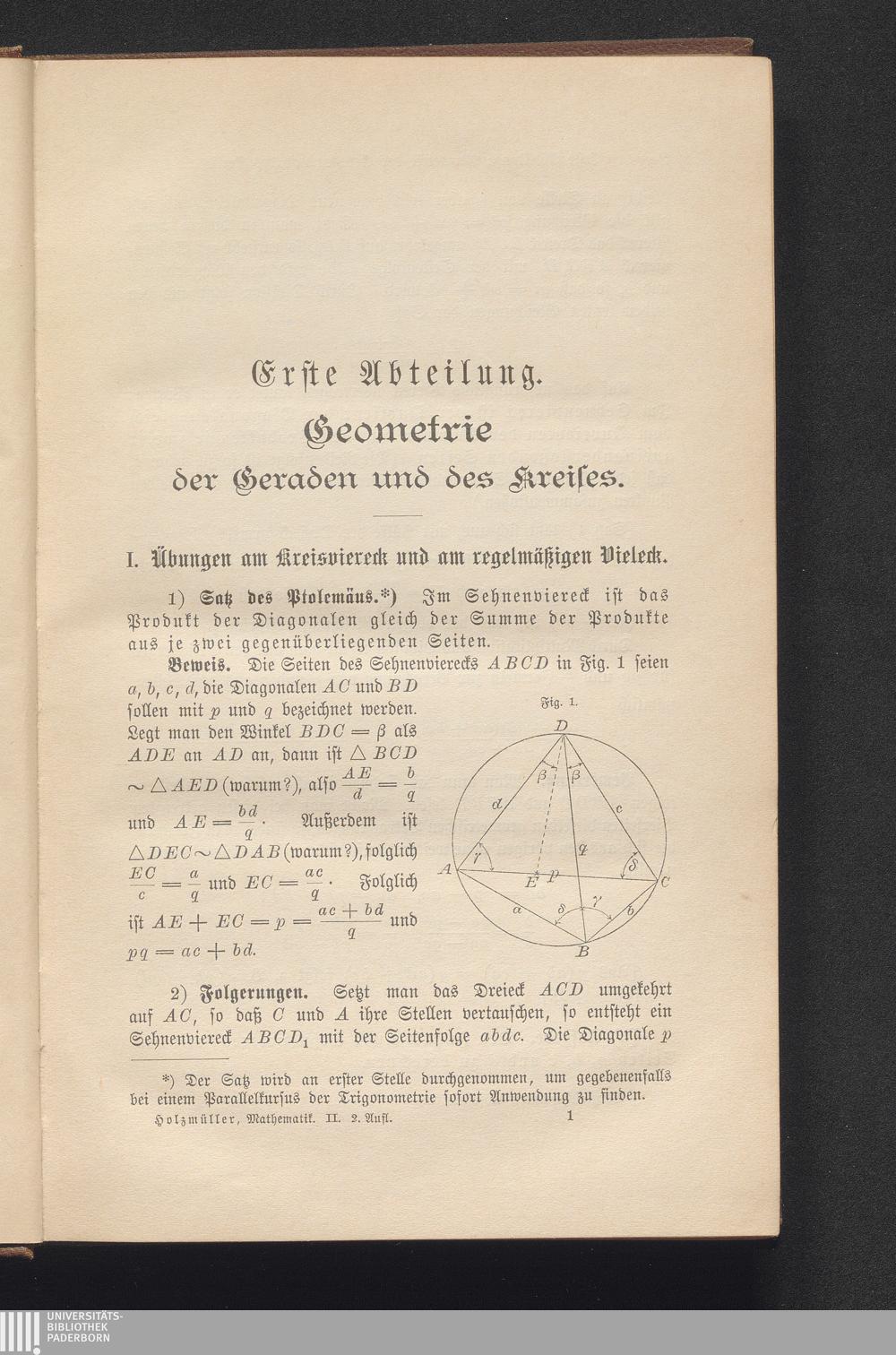 I. Übungen am Kreisviereck und am regelmäßigen Vieleck.