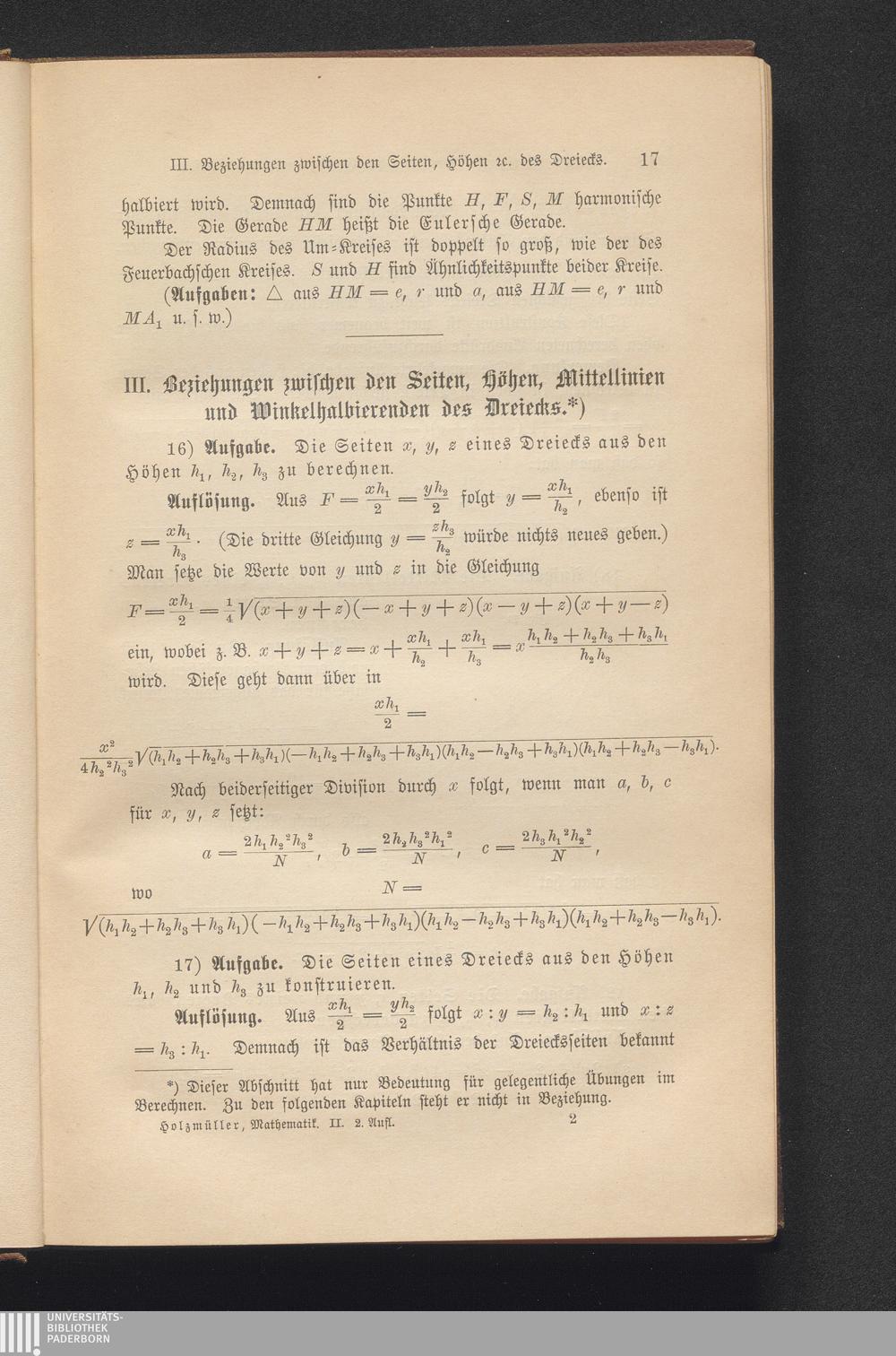 III. Beziehungen zwischen den Seiten; Höhen, Mittellinien und Winkelhalbierenden[...]