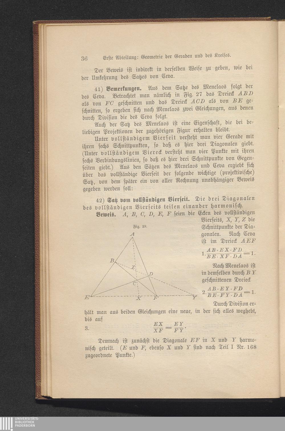 Anwendungen auf vollständiges Vierseit, Pascalschen Satz und Ähnlichkeitsachsen dreier[...]