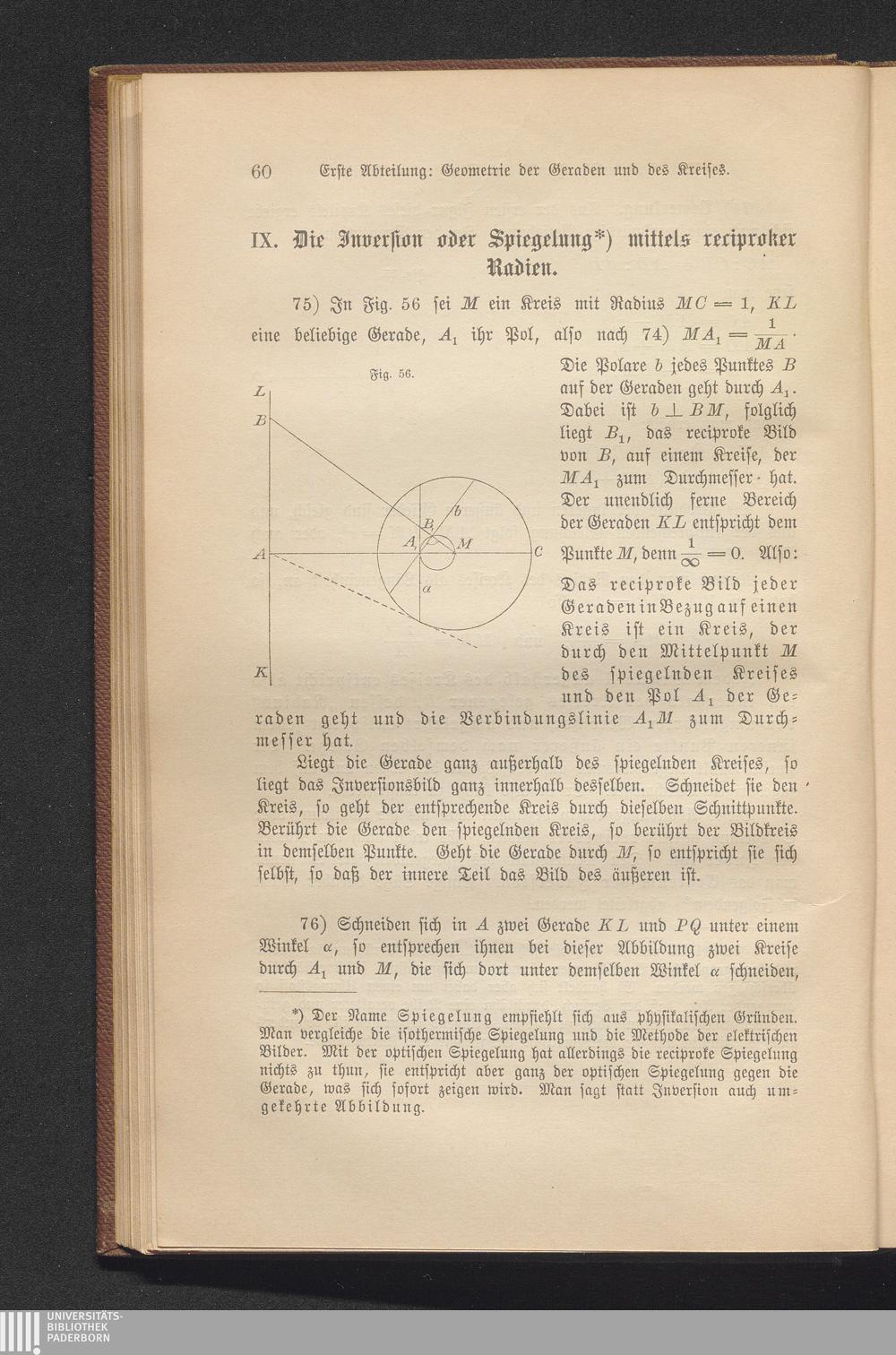 IX. Die Inversion oder Spiegelung mittels reciproker Radien.