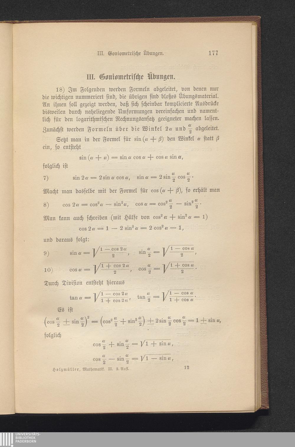 III. Goniometrische Übungen.