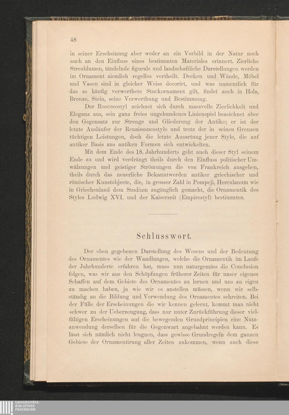 Entwicklung und Charakteristik des Ornamentes in den wichtigsten Stylarten