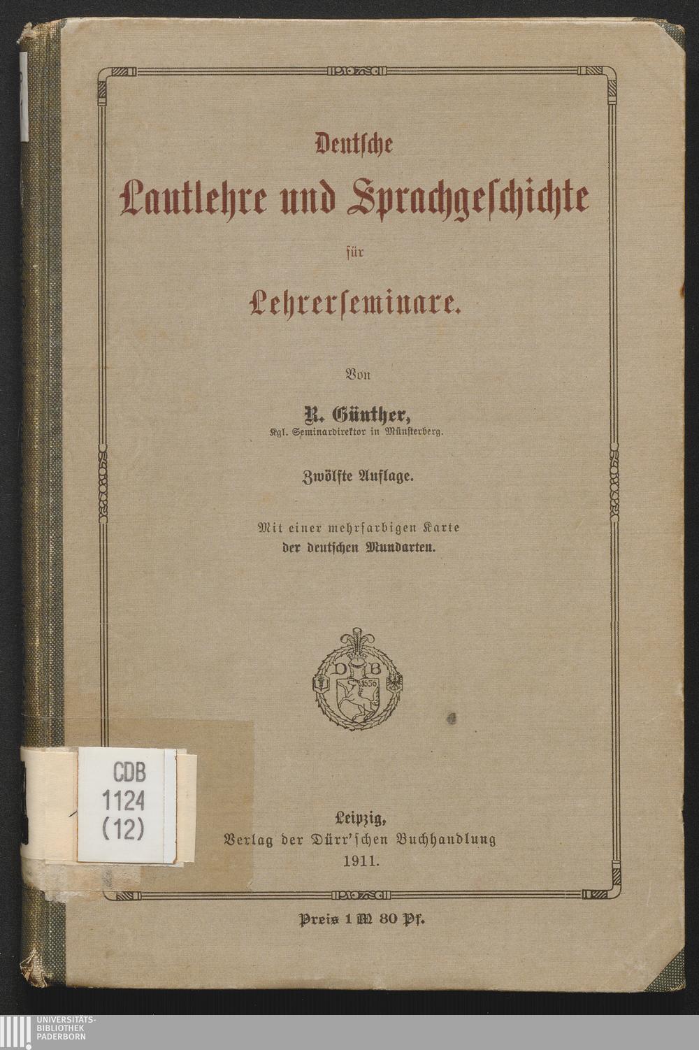 Deutsche Lautlehre und Sprachgeschichte für Lehrerseminare / von R. Günther