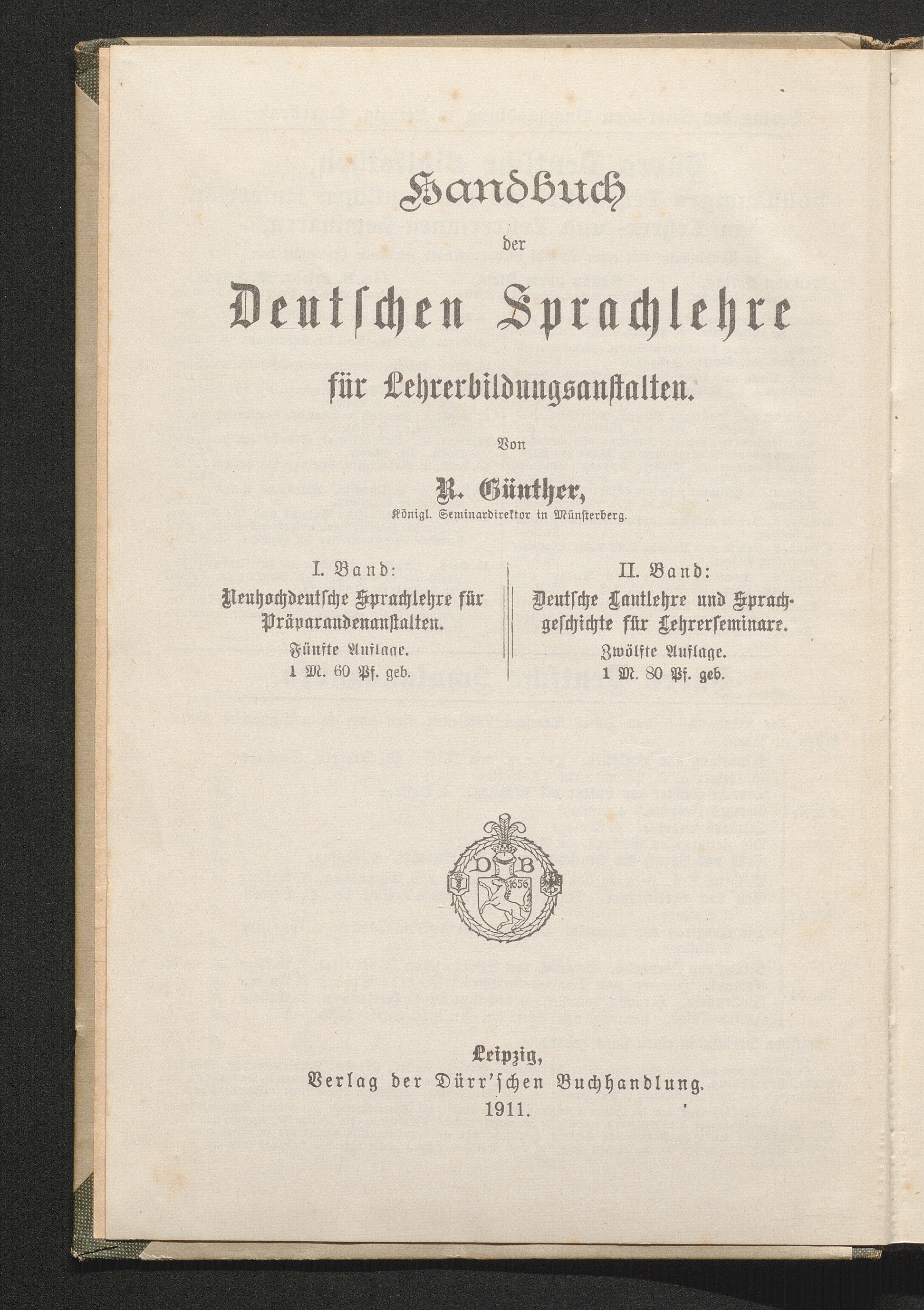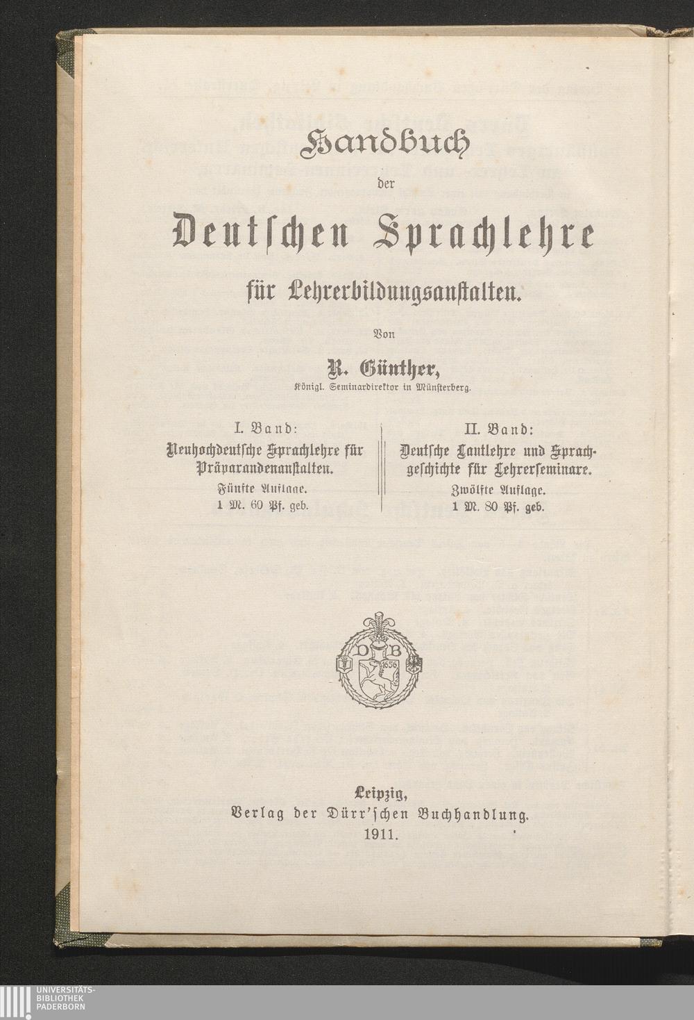 Deutsche Lautlehre und Sprachgeschichte für Lehrerseminare / von R. Günther