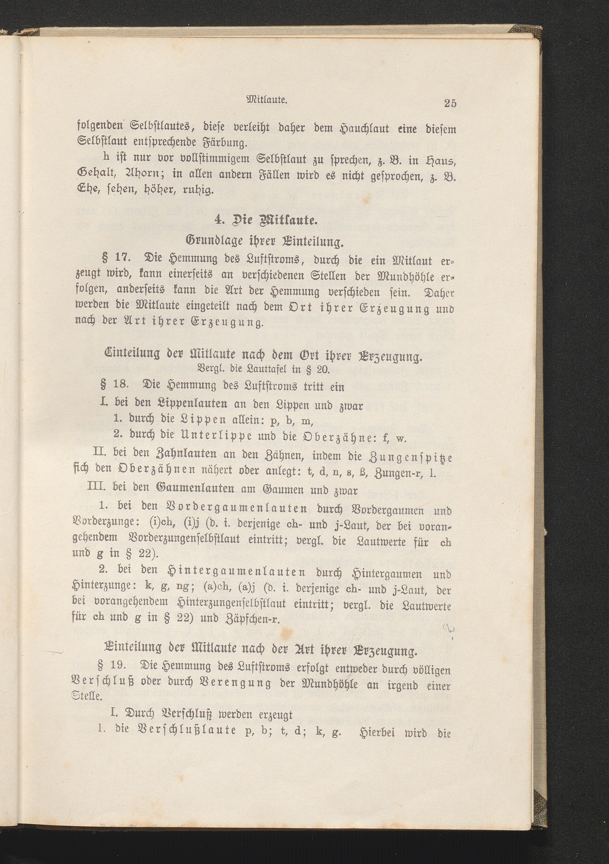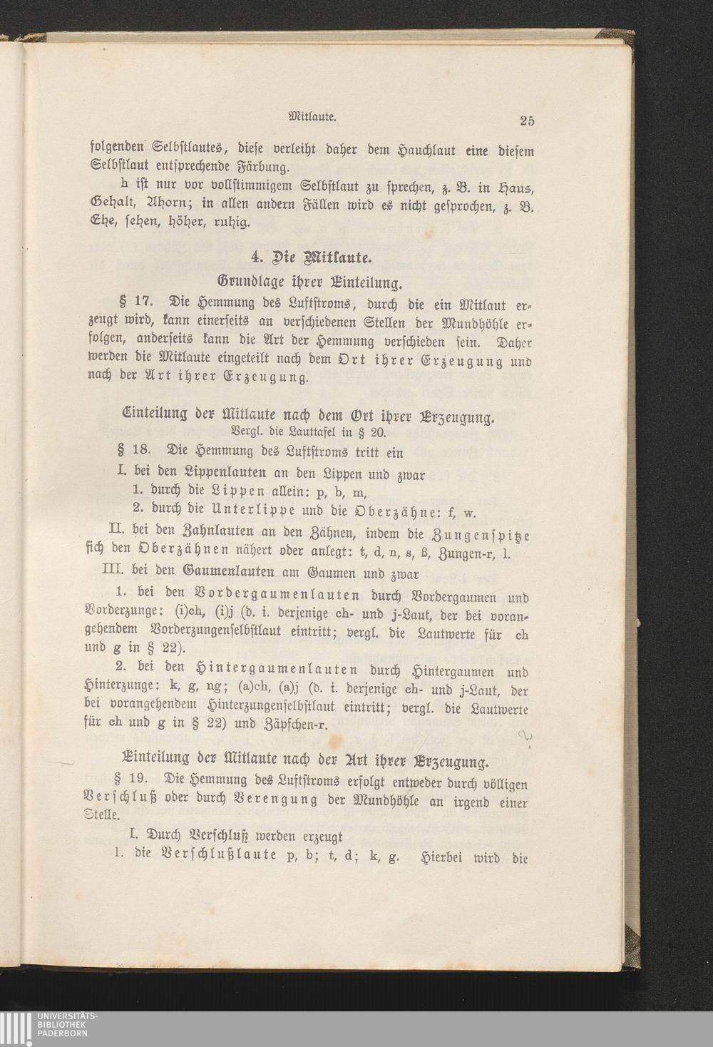 Einteilung der Mitlaute. Lauttafel. § 18-20