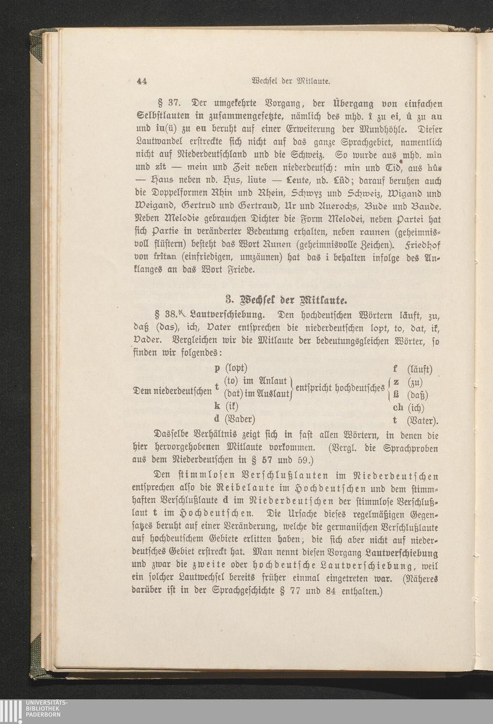 Lautverschiebung. § 38