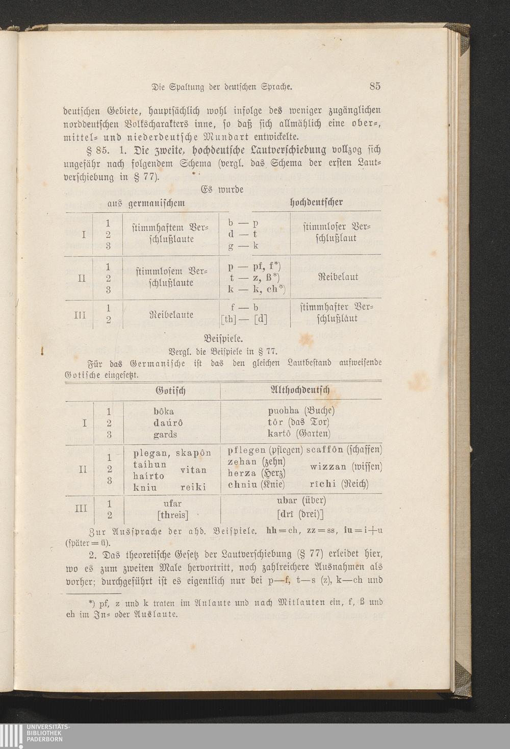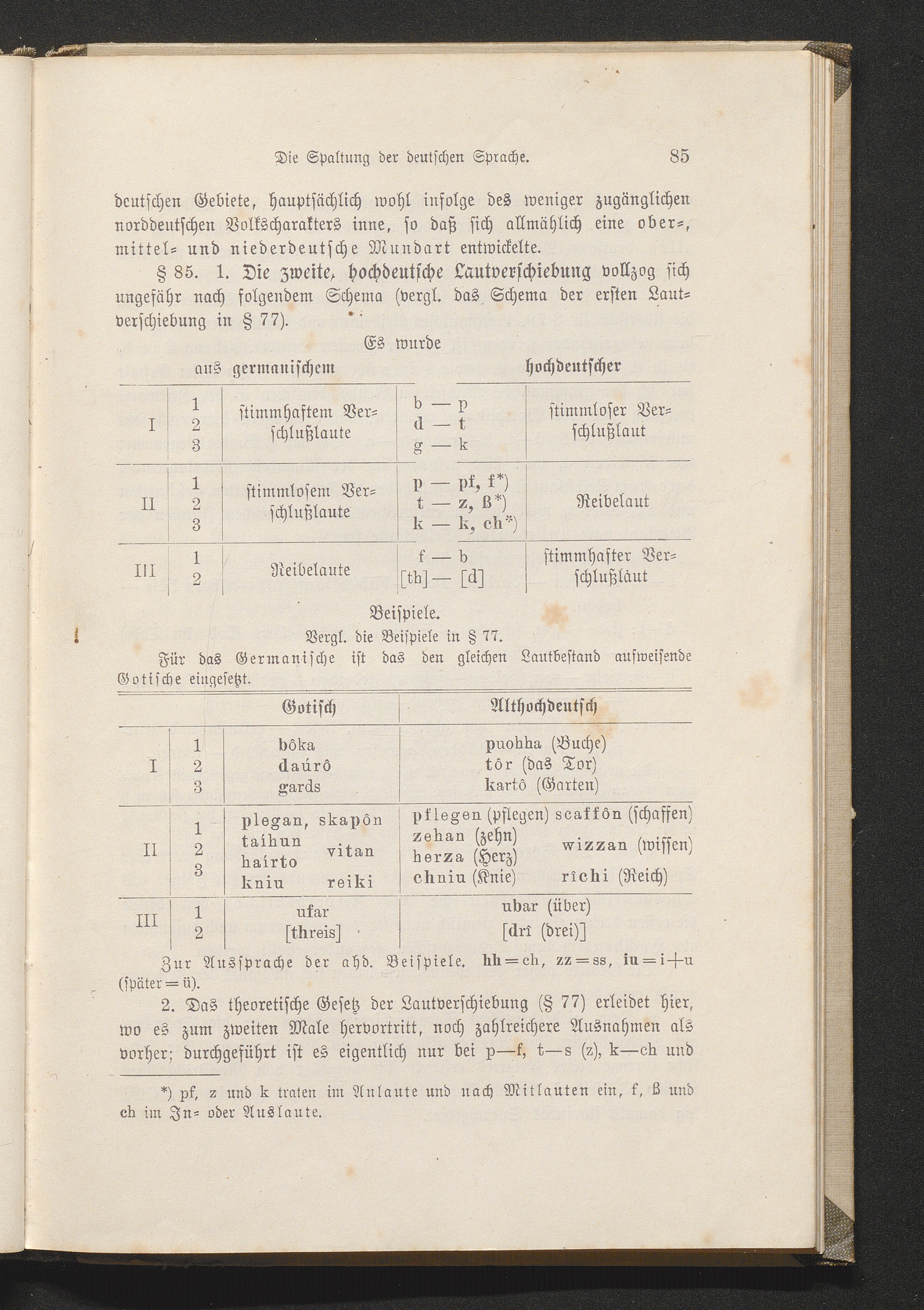 Die zweite oder hochdeutsche Lautverschiebung. § 85