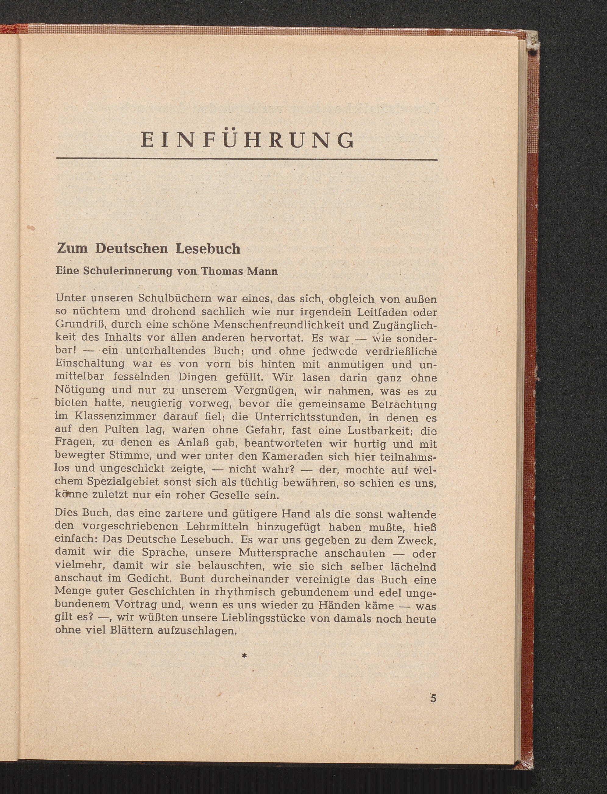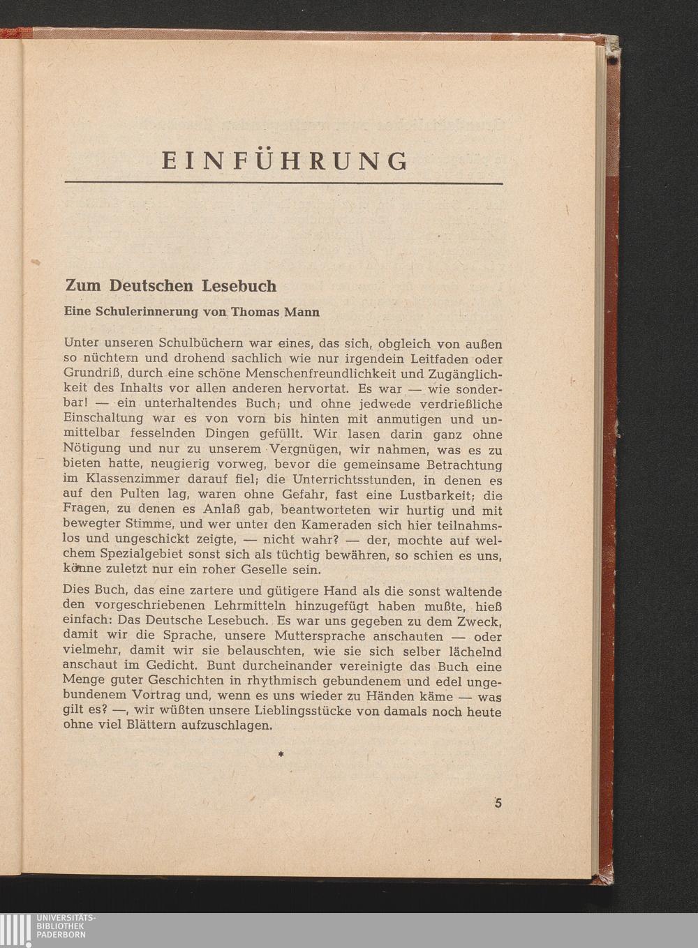 Mann, Thomas Eine Schulerinnerung an das Deutsche Lesebuch
