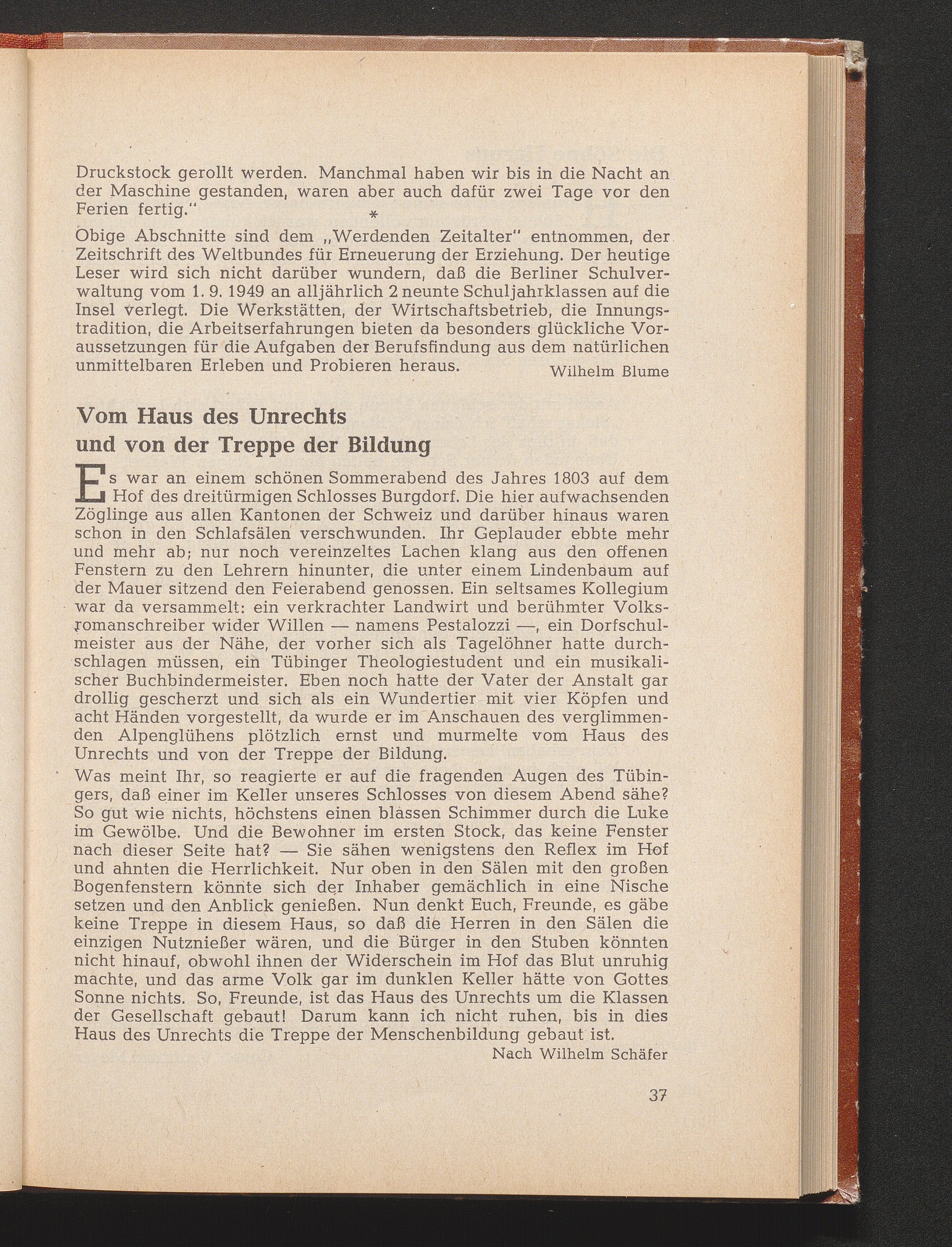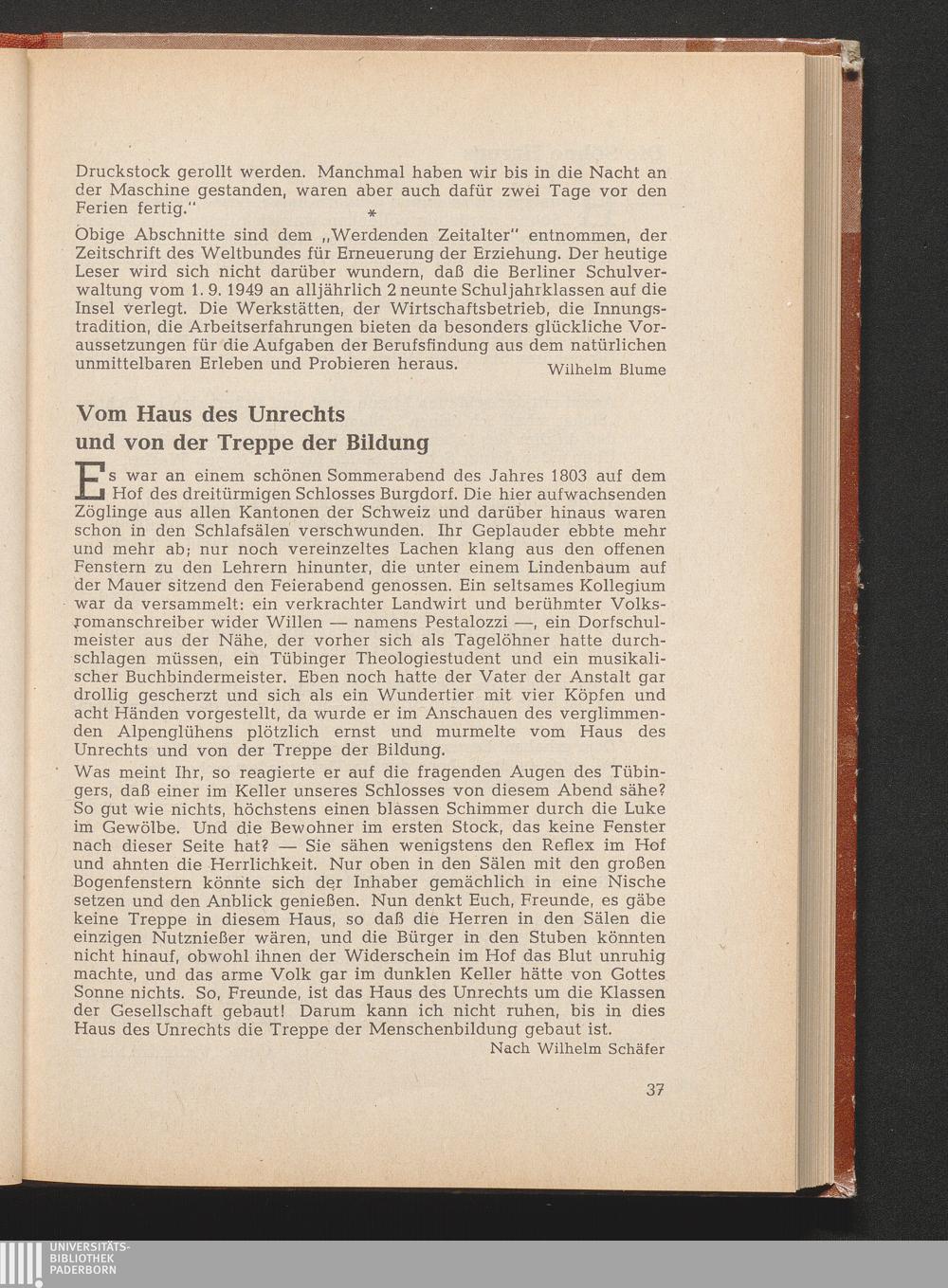 Schäfer, Wilhelm Vom Haus des Unrechts und von der Treppe der Bildung