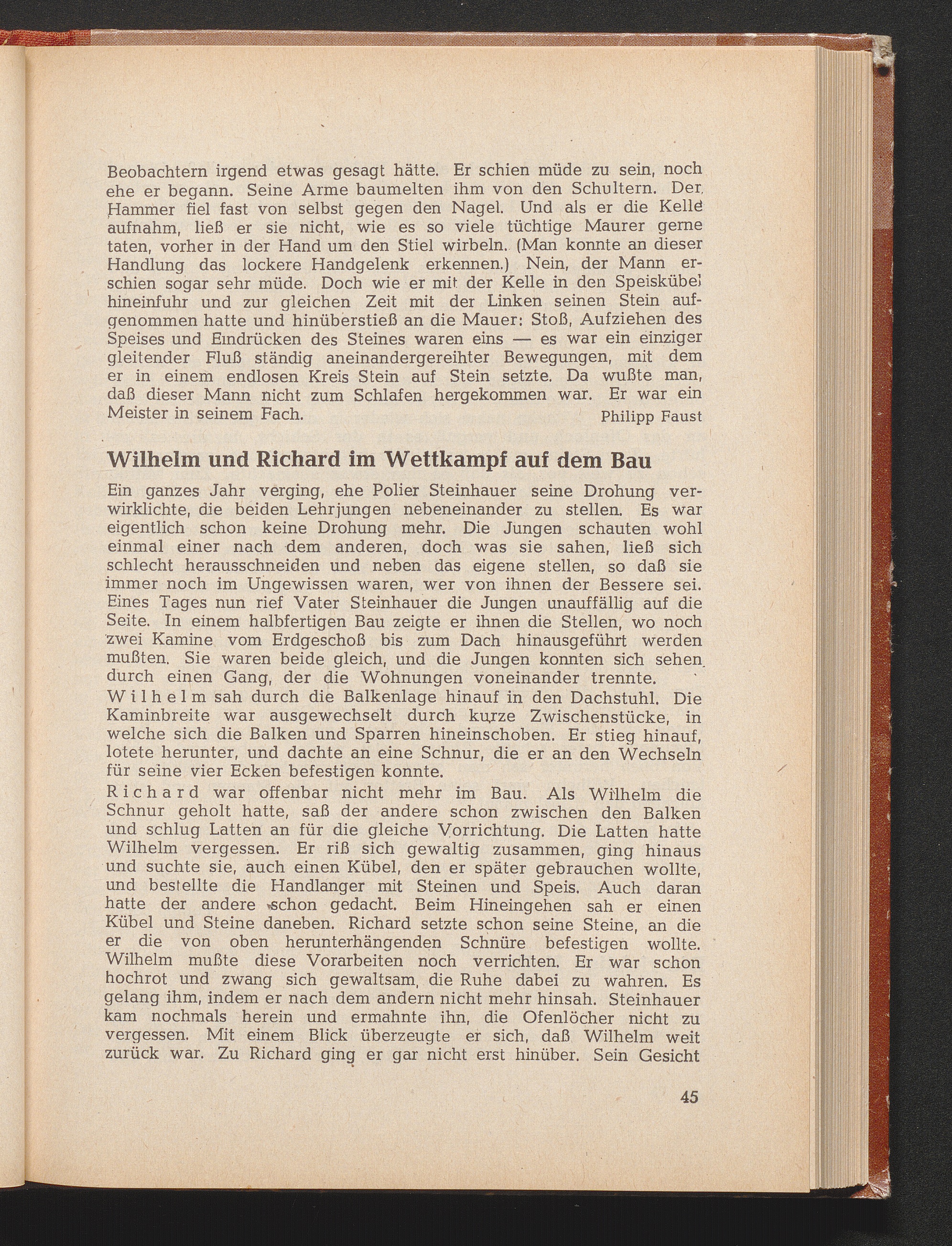 Faust, Philipp Wilhelm und Richard im Wettkampf auf dem Bau