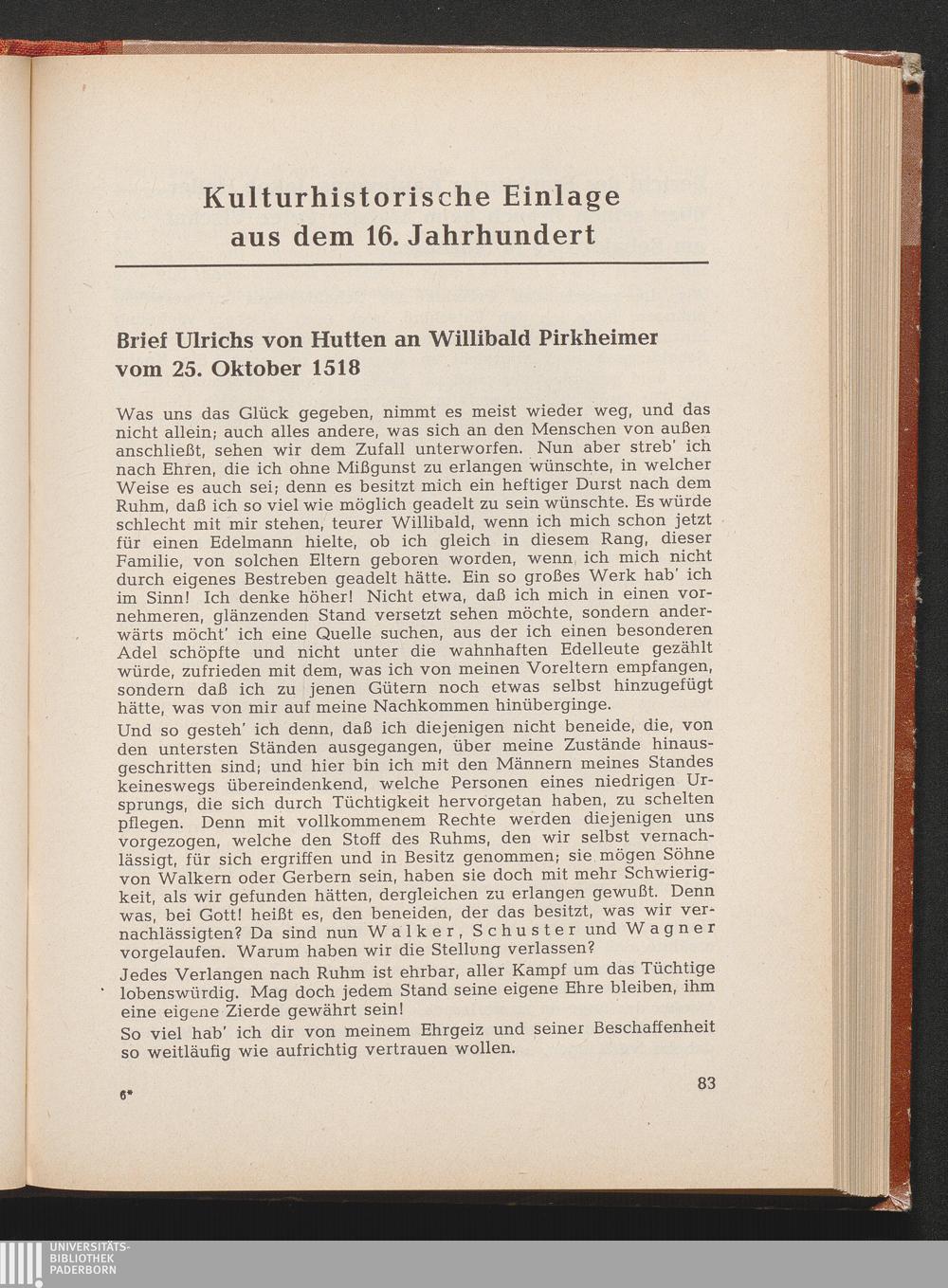 v. Hutten, Ulrich Brief an Willibald Pirksheimer, 1518