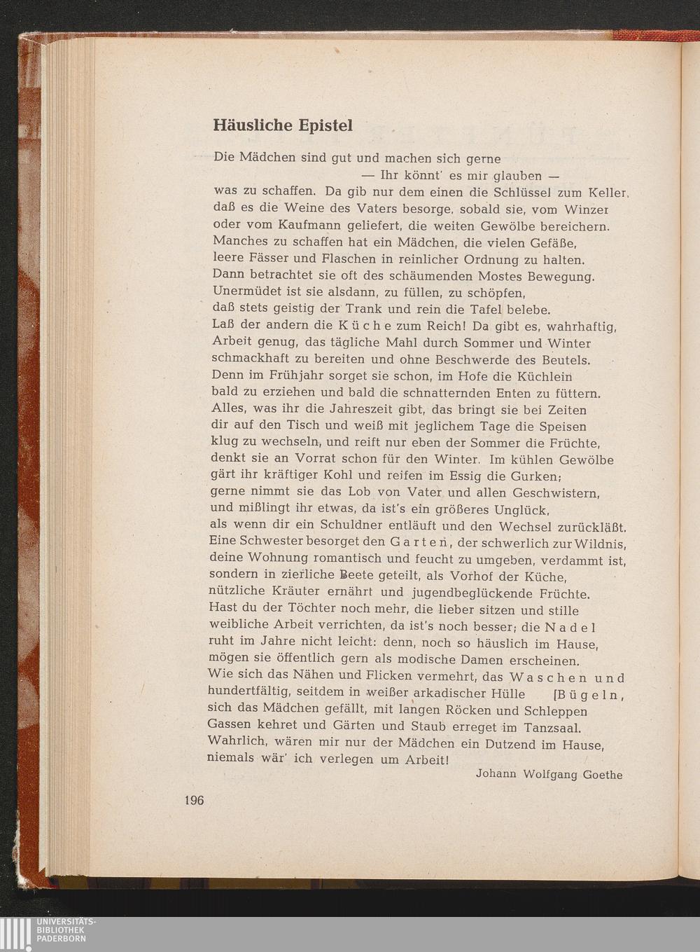 Goethe, Johann Wolfgang *Häusliche Epistel
