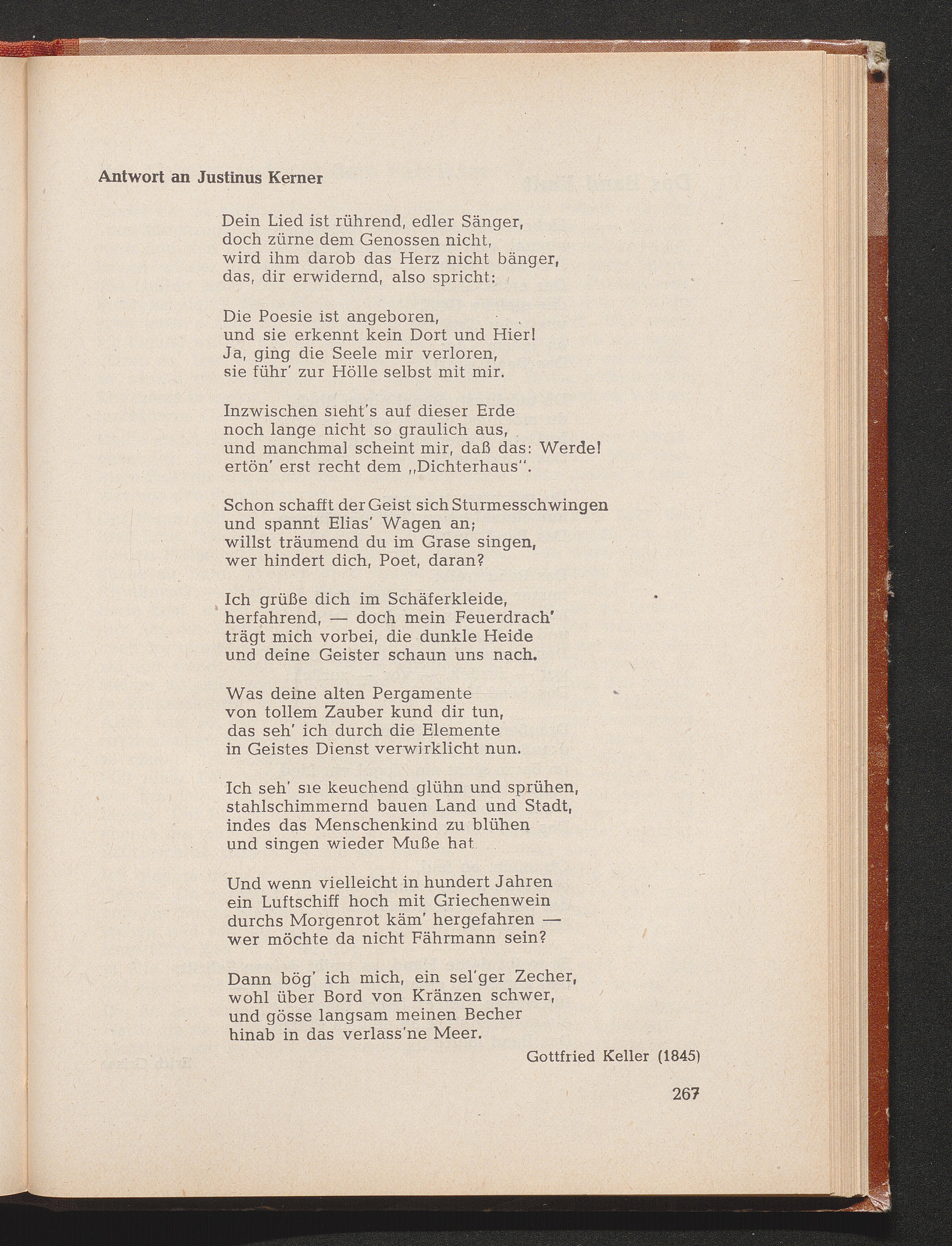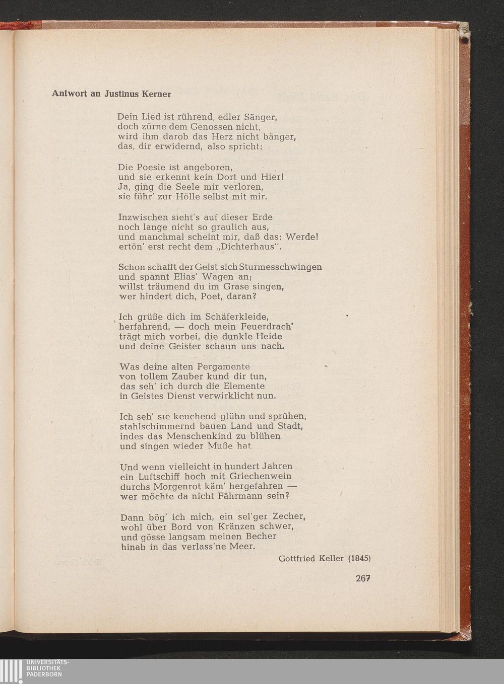 Keller, Gottfried *Antwort an Justinus Kerner (1845)