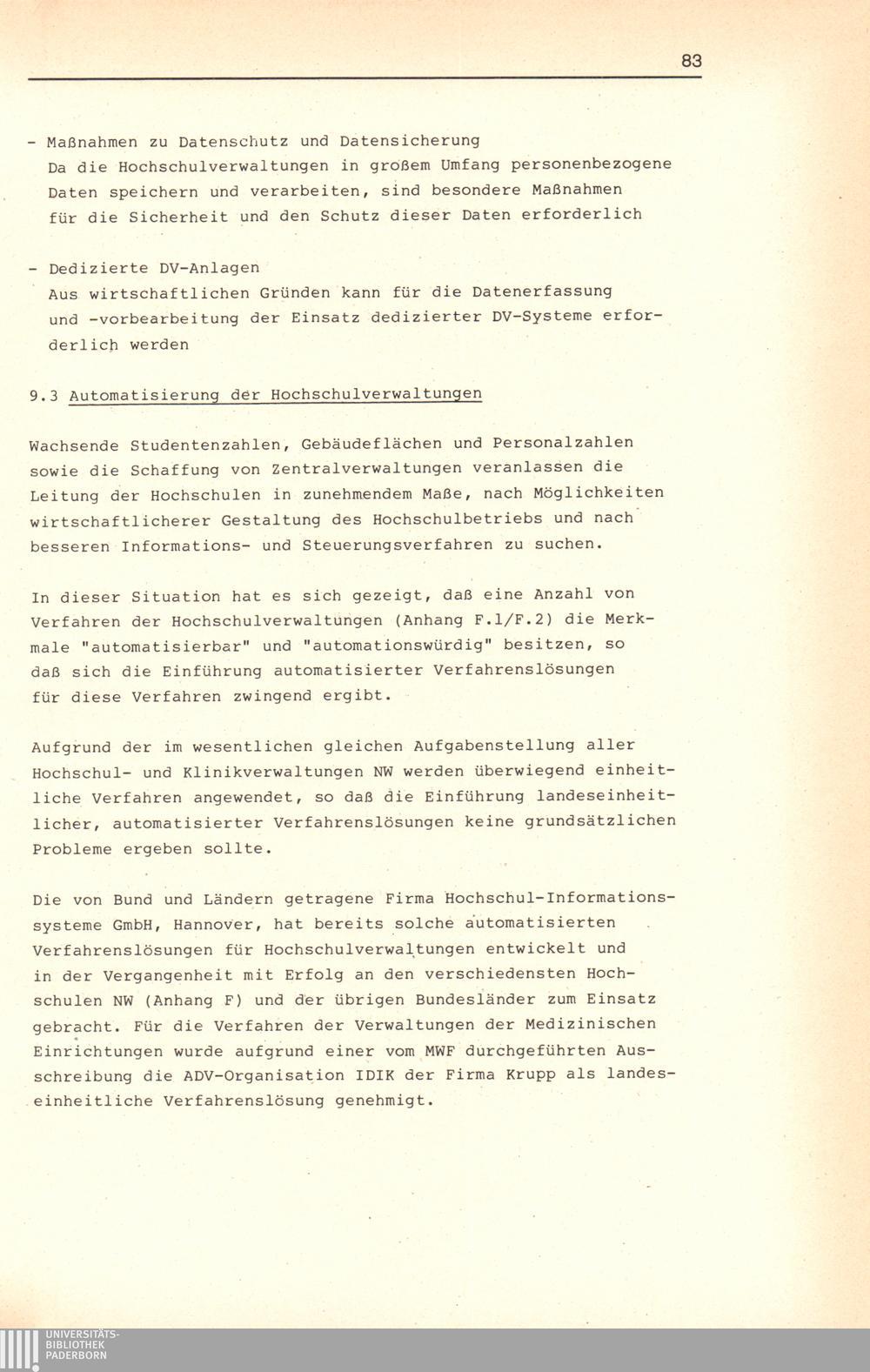 ADV-Gesamtplan für die Hochschulen des Landes Nordrhein-Westfalen : (ADVGP-HS) ; Empfehlungen der Sachverständigen-Arbeitsgruppe beim Minister für Wissenschaft und Forschung des Landes Nordrhein-Westfalen / vorgelegt von der Sachverständigen-Arbeitsgruppe für die Erstellung eines Gesamtplanes für die Automatisierte Datenverarbeitung an den Hochschulen des Landes Nordrhein-Westfalen